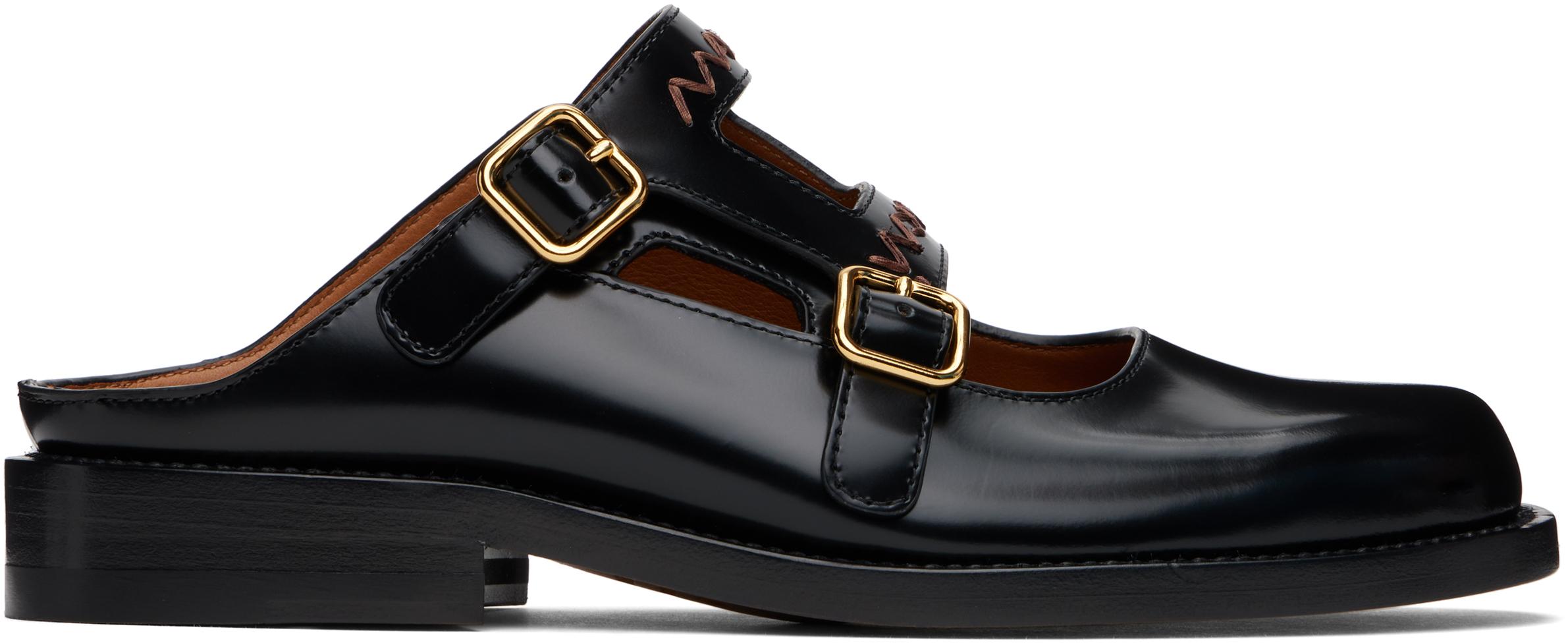 Polished calfskin Mary Jane-style slip-on loafers in black.