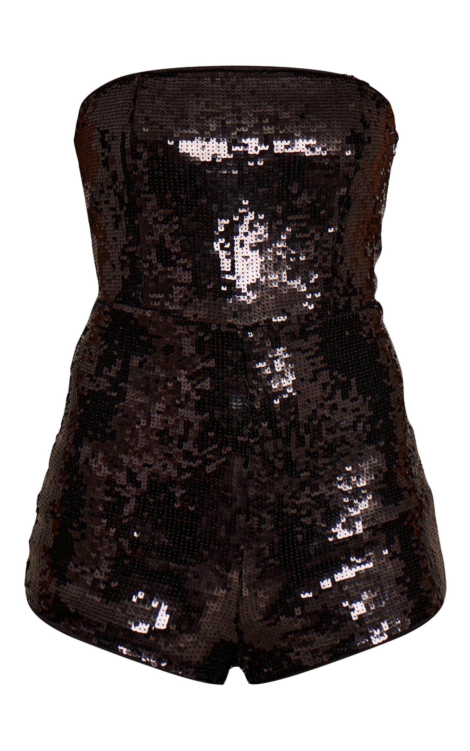 Own the spotlight in the black bandeau sequin unitard romper. With a sleek bandeau neckline and all-over black sequins, it's cut to a modern unitard fit. Perfect for your next high-energy evening or special event. Complete the look with gold strappy heels and essential gold earrings.Length approx 58.5cm/23inch (Based on sample size US 4)Model wears size UK 8/ EU 36/ AUS 8/ US 4Model Height - 5ft 8inchp]:!mb-4inch>Brand: PrettyLittleThingCategory: DressesProduct type: UnitardColor: BlackMaterial: SequinOccasion: Evening