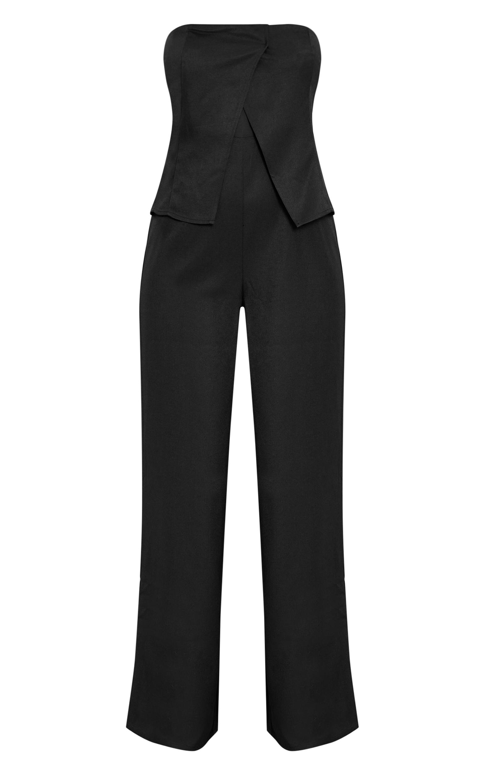 Feel empowered this evening in the black bandeau tailored straight leg jumpsuit. This black jumpsuit showcases a sleek bandeau neckline, a tailored peplum bodice, and a wide straight leg. Curated for nights when understated confidence is key, this piece is ideal for exclusive evening gatherings. Style yours with elegant platform heels and a chic clutch bag.Length approx 145cm/57inch (Based on sample size US 4)Model wears size UK 8/ EU 36/ AUS 8/ US 4Model Height - 5ft 6inchp]:!mb-4inch>Brand: PrettyLittleThingCategory: DressesProduct type: Wide Leg JumpsuitColor: BlackMaterial: Tailored WovenOccasion: Evening
