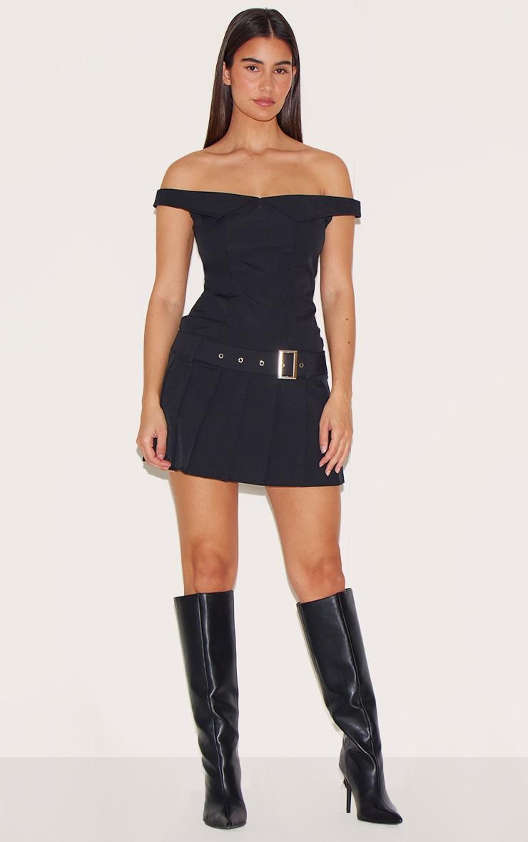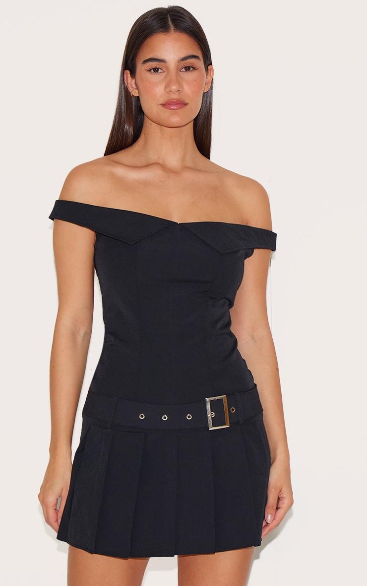 Look all kinds of glam in this black bardot belted pleated shift dress. Brought to you in a black hue material with a bardot neckline and belted design, this pleated shift dress is at the top of our wish list. Style with fresh kicks, statement acessories and shades for a look like no other. Length approx 58cm/23inch (Based on a sample size UK 8) Model wears size UK 8/ EU 36/ AUS 8/ US 4p]:!mb-0inch>Category: DressesProduct type: A-line / Skater DressColor: BlackMaterial: Tailored WovenDesign: PlainNeckline: BardotSleeves: SleevelessOccasion: Day