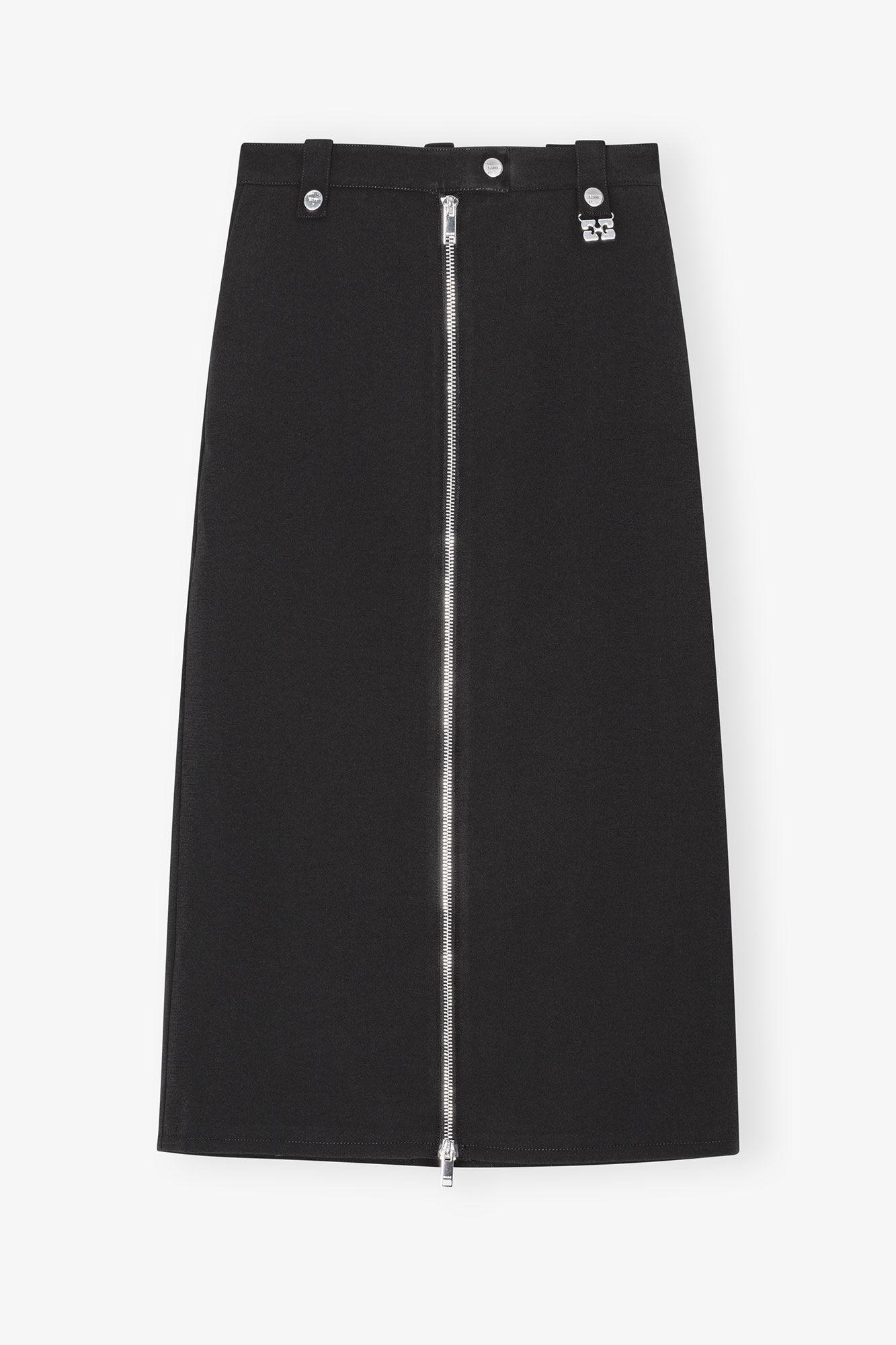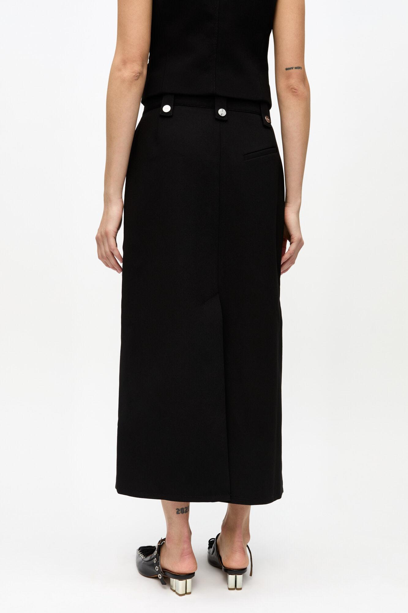 This Black Bonded Crepe Skirt features belt loops, a zip and button closure, side pockets, a back pocket and a silver GANNI Butterfly hardware logo.
