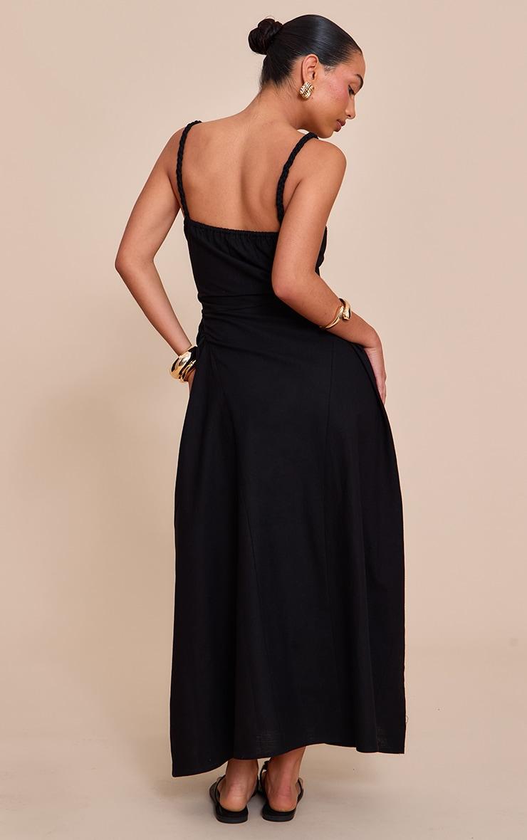 Turn heads in the black braided v waist midaxi dress, designed to sculpt and flatter. Featuring a braided waist detail that draws the eye and adds texture, this dress combines simplicity with statement. The midaxi length makes it a versatile piece for day-to-night dressing. Style with gold accessories and heels for instant impact.Length approx 134.5cm/53inch (Based on sample size US 4)Model wears size UK 8/ EU 36/ AUS 8/ US 4Model Height - 5ft 7inchp]:!mb-4inch>Brand: PrettyLittleThingCategory: DressesProduct type: Shift DressColor: BlackMaterial: Woven CrepeDesign: PlainNeckline: Straight NeckSleeves: Spaghetti StrapOccasion: Day