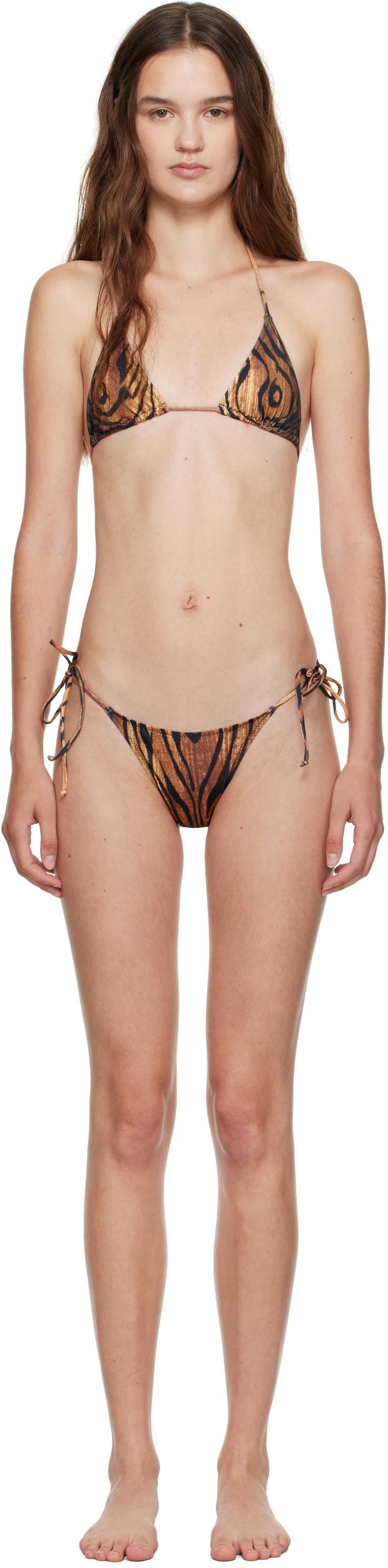 Stretch jersey bikini top and bottom. · Graphic pattern printed throughout · Self-tie halter strap · Self-tie fastening at bottom sides · Partially lined Supplier color: Black