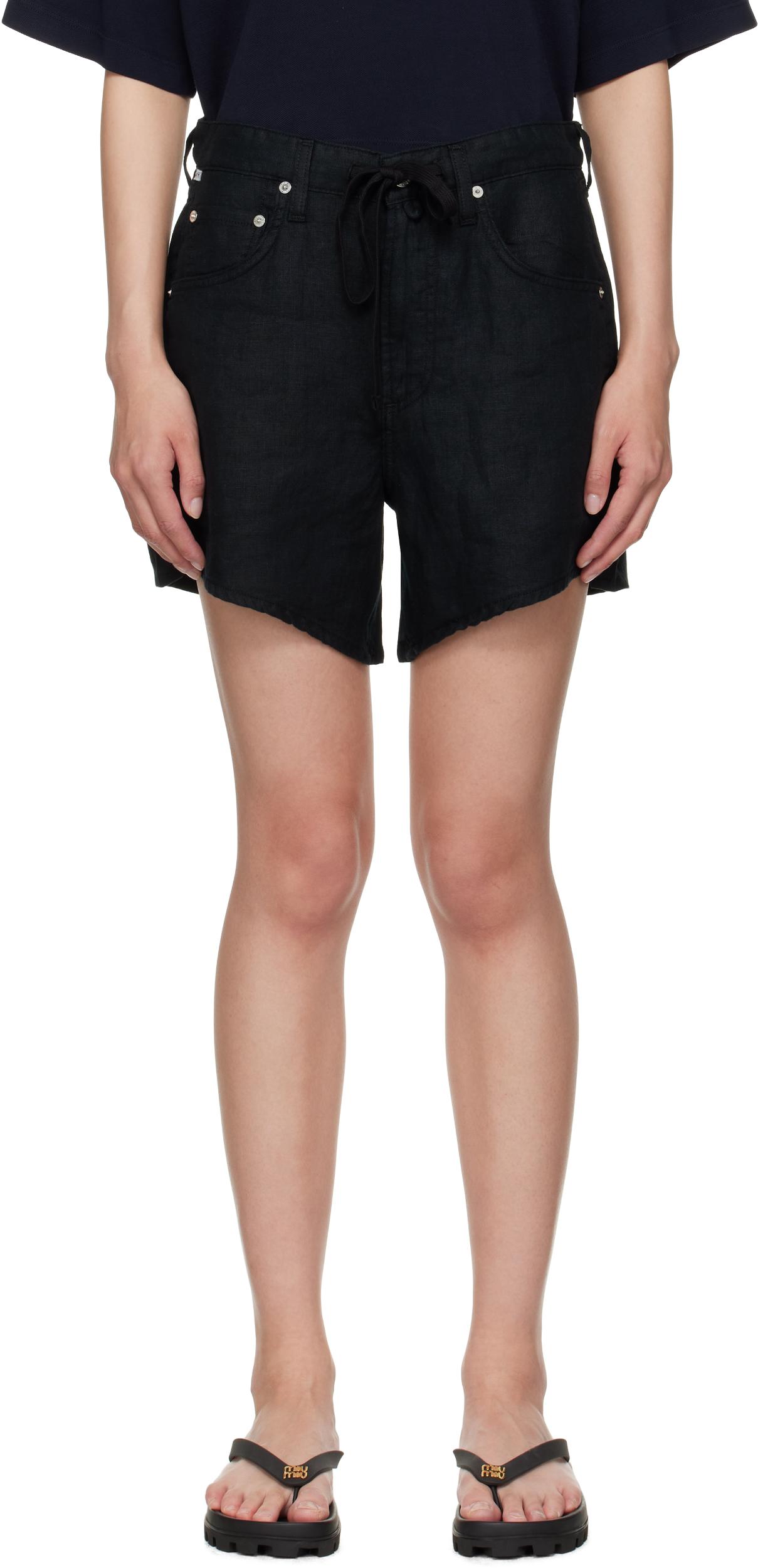 Linen hopsack shorts. · Drawstring and belt loops at waistband · Five-pocket styling · Zip fly · Logo patch at back waistband Supplier color: Black