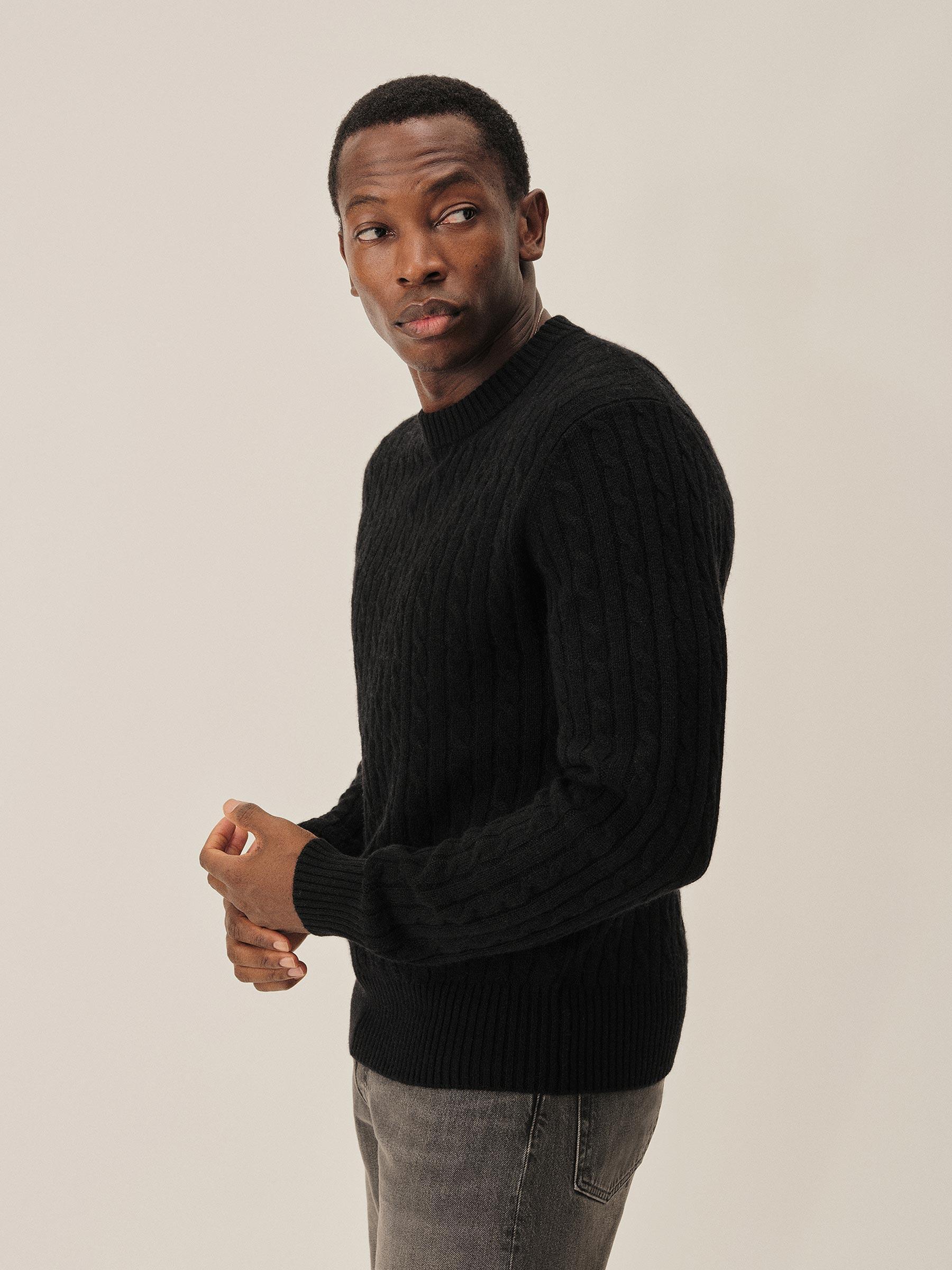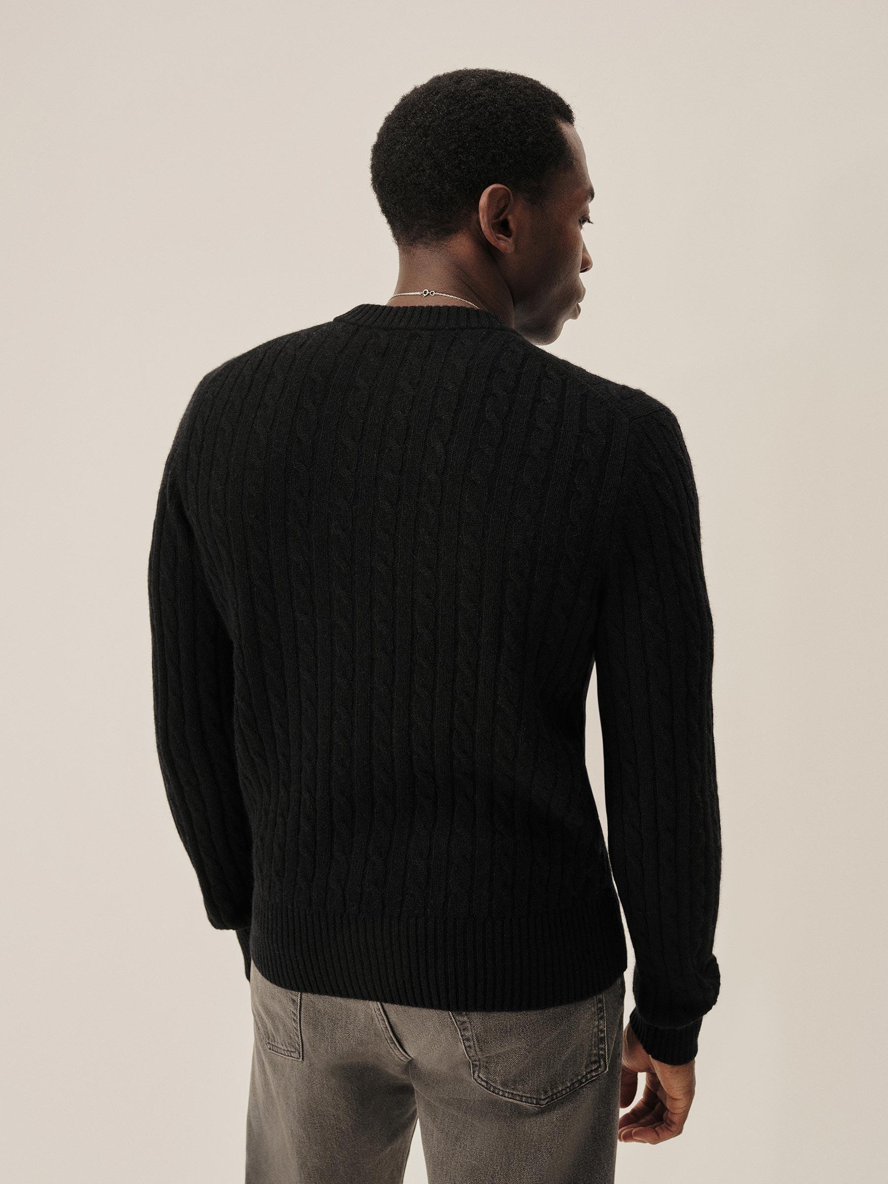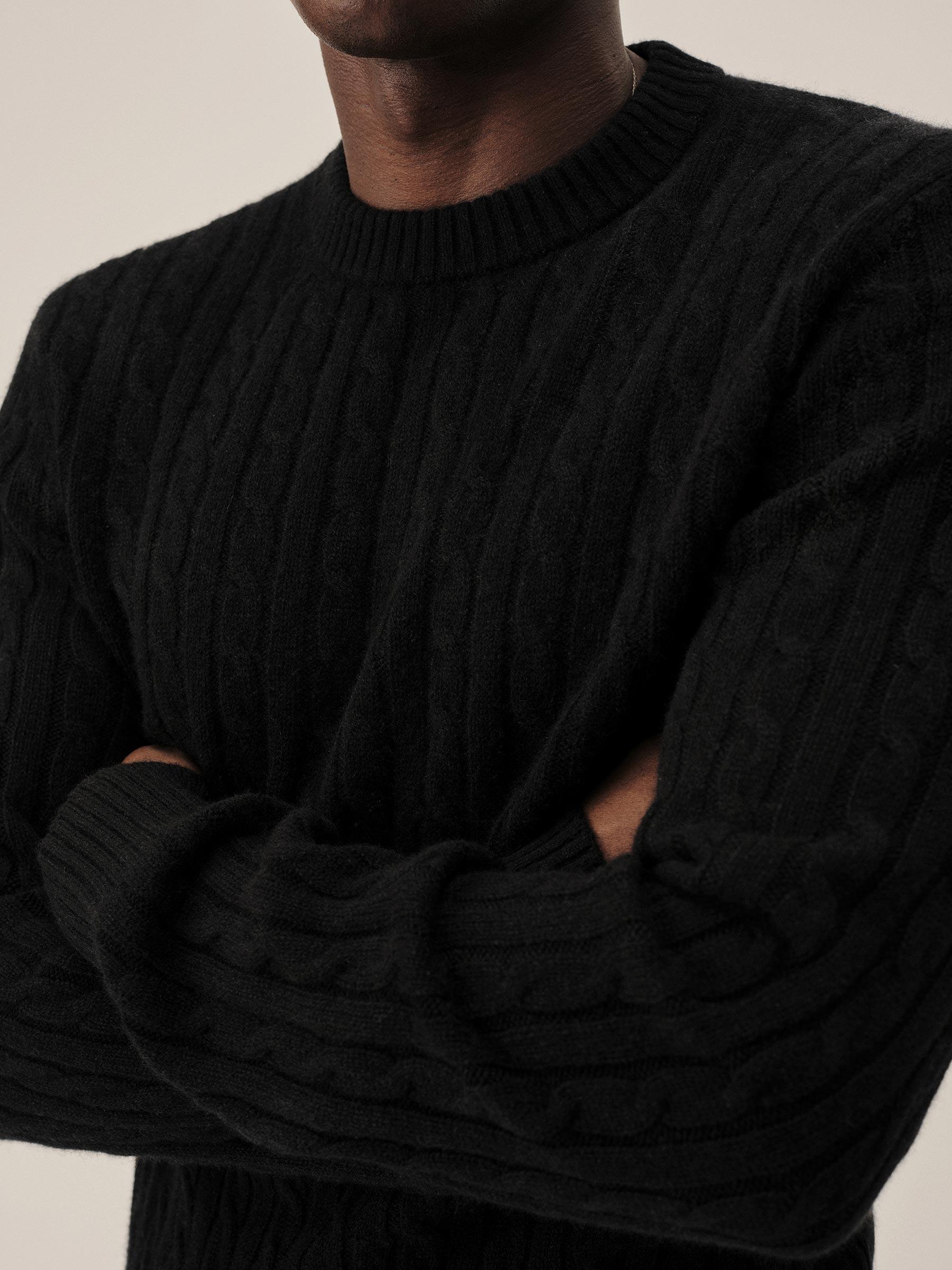 Black California Cashmere Cable Crew