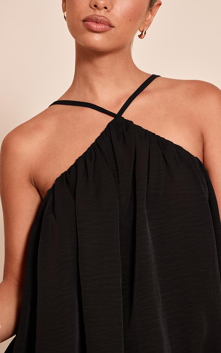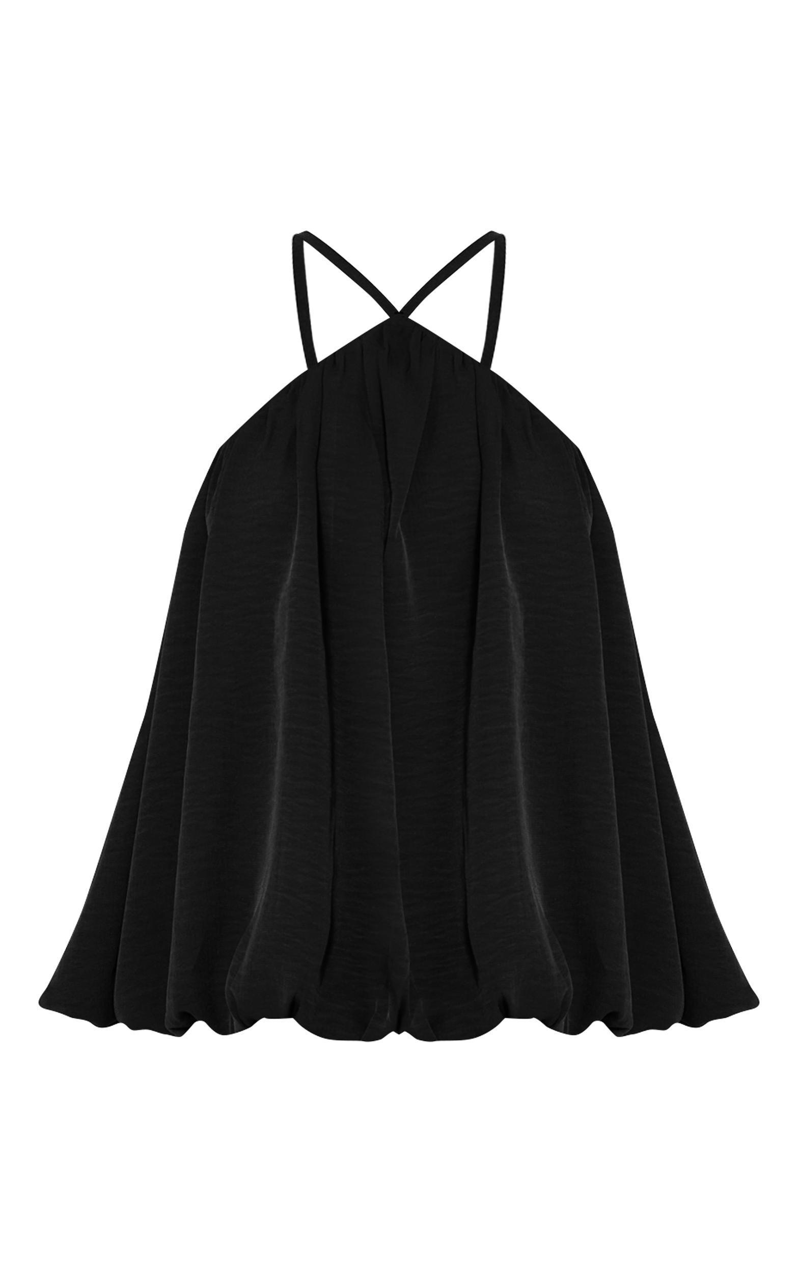 Make a statement in the black chiffon halter neck puff ball top. Made from a black chiffon material with a halterneck design and voluminous puffball hem, it adds drama to any outfit. Style with sleek pants and court heels for a bold evening look.Length approx 48.5cm/19inch (Based on sample size US 4)Model wears size UK 8/ EU 36/ AUS 8/ US 4Model Height - 5ft 7inchp]:!mb-4inch>Category: TopsProduct type: Cami TopColor: BlackMaterial: Woven CrepeDesign: PlainNeckline: HalterneckSleeves: SleevelessOccasion: Day