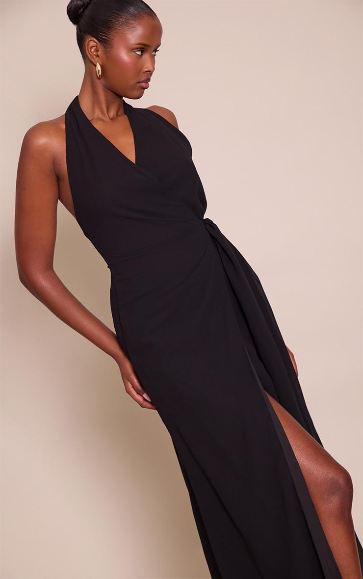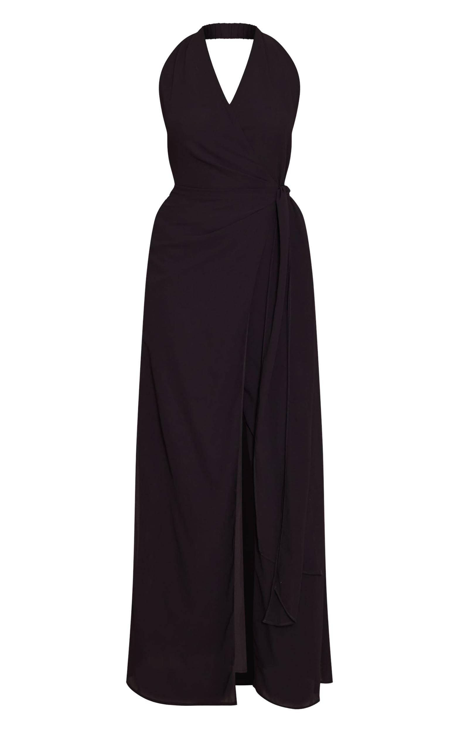 Command attention in the black chiffon tie maxi dress. It features a halter v-neck, tie-waist, and leg slit. For evening plans. Pair with black heels and sleek accessories.Length approx 155cm/61inch (Based on sample size US 4)Model wears size UK 8/ EU 36/ AUS 8/ US 4Model Height - 5ft 9inchp]:!mb-4inch>Brand: PrettyLittleThingCategory: DressesProduct type: Shift DressColor: BlackMaterial: ChiffonOccasion: Evening