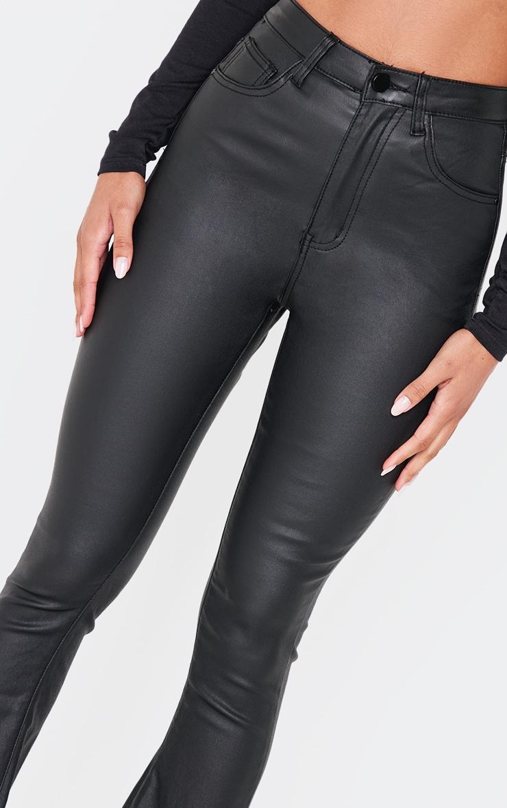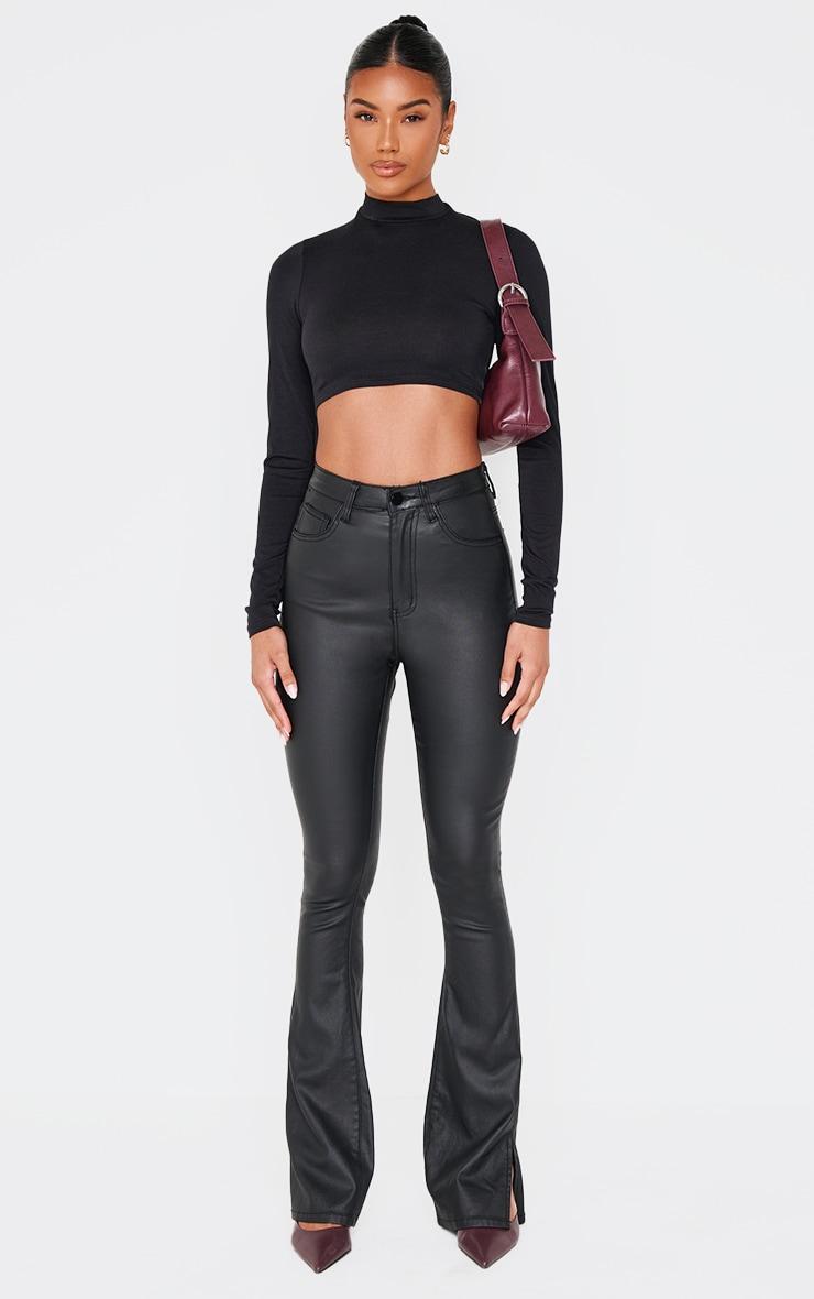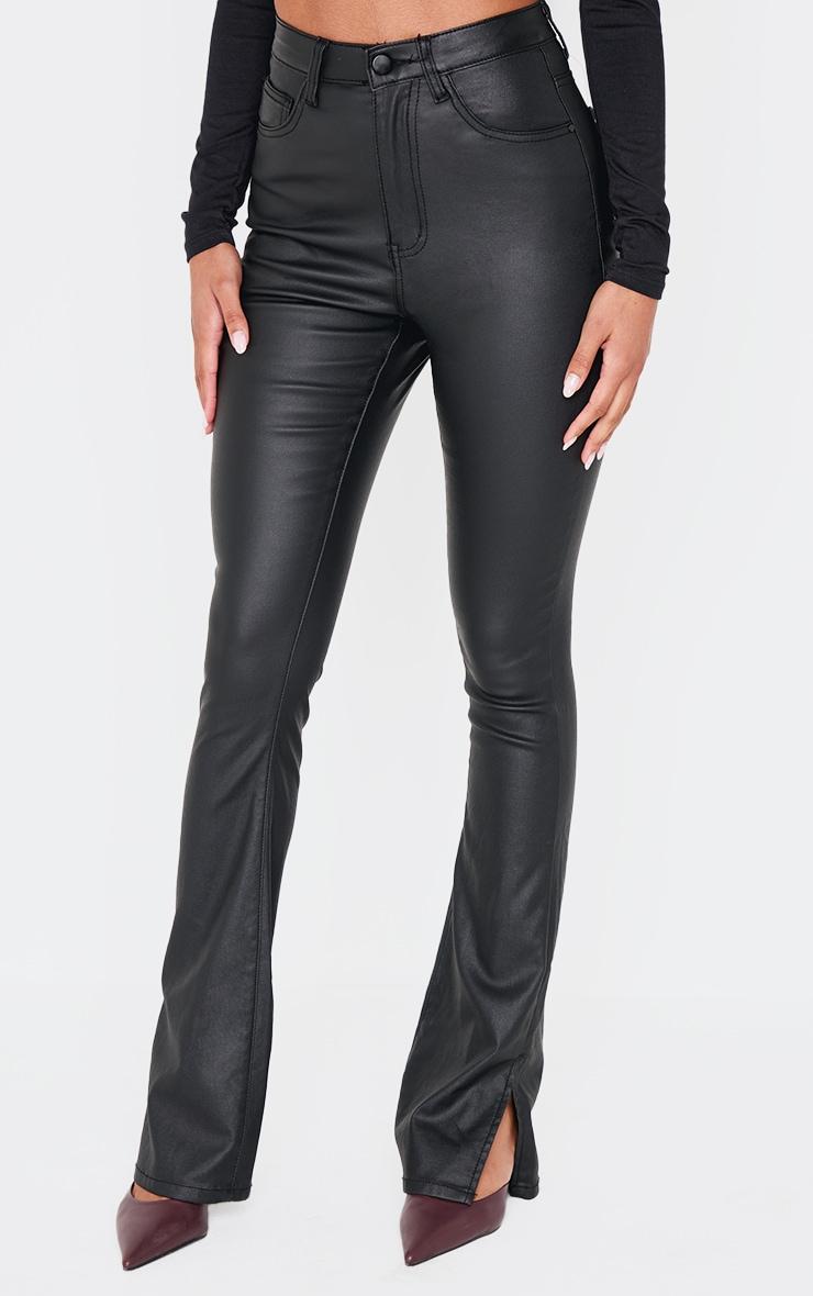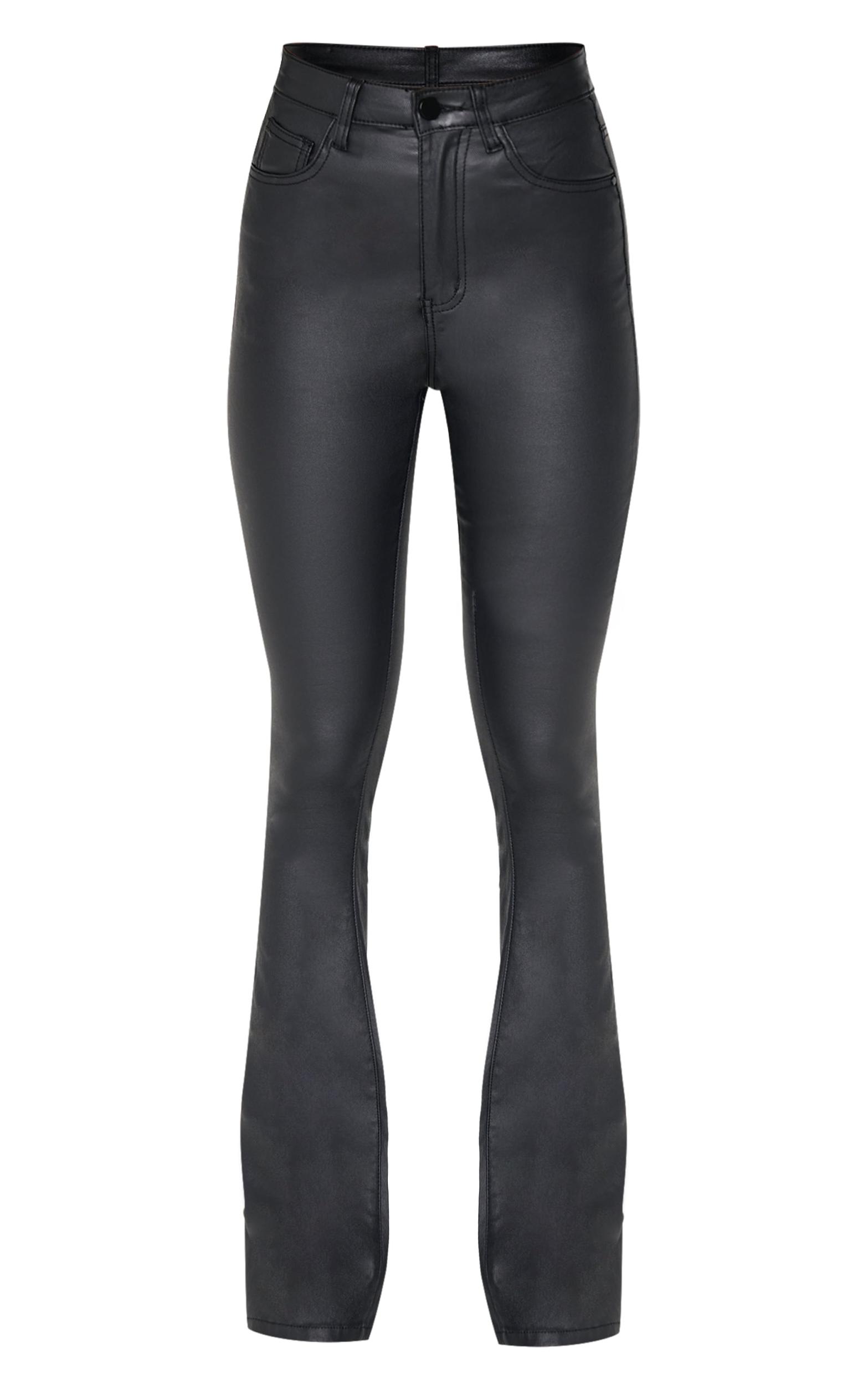 Elevate your denim repertoire with these coated black flares. The sleek, coated finish offers a refined edge to a classic silhouette, while the subtle split hem introduces a contemporary detail that elongates the leg. Crafted from durable denim, these flares offer both structure and comfort. Consider styling these with a tucked-in knit and a pair of pointed ankle boots. Or, for a full denim look, partner them with a denim top and delicate chain from our jewelry collection. Length approx 81cm/32inch (Based on a sample size UK 8) Model wears size UK 8/ EU 36/ AUS 8/ US 4Model Height - 5ft 7inchp]:!mb-4inch>Brand: PrettyLittleThingCategory: DenimProduct type: Flared JeansColor: BlackMaterial: Coated DenimDesign: PlainOccasion: Day
