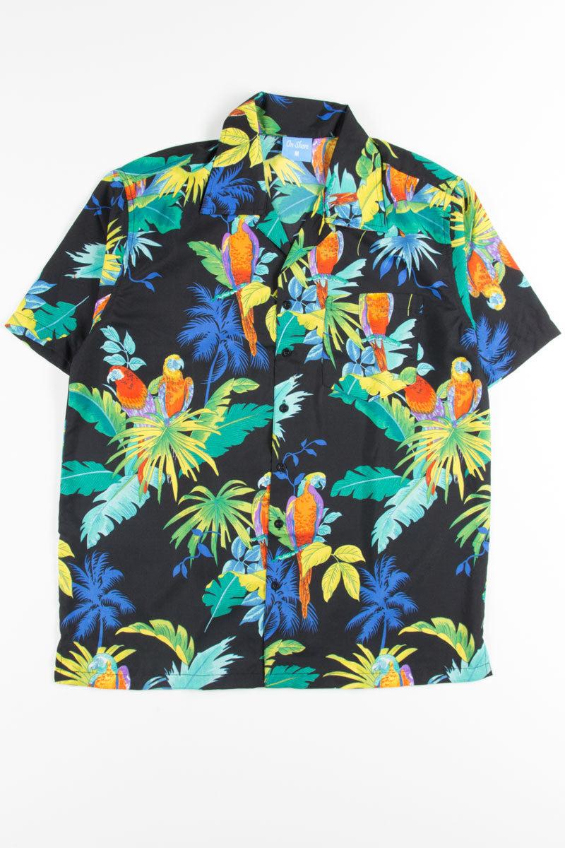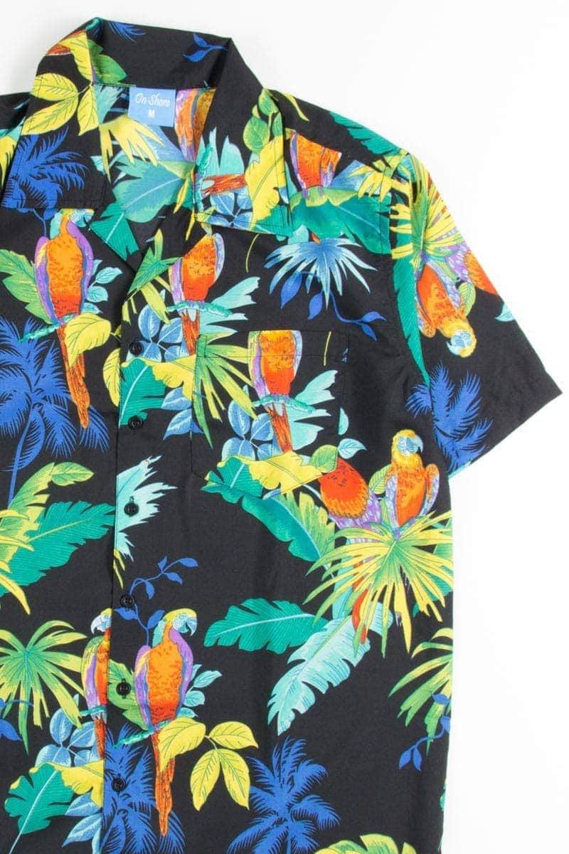 Black Contrast Colored Parrots Hawaiian Shirt Product Image
