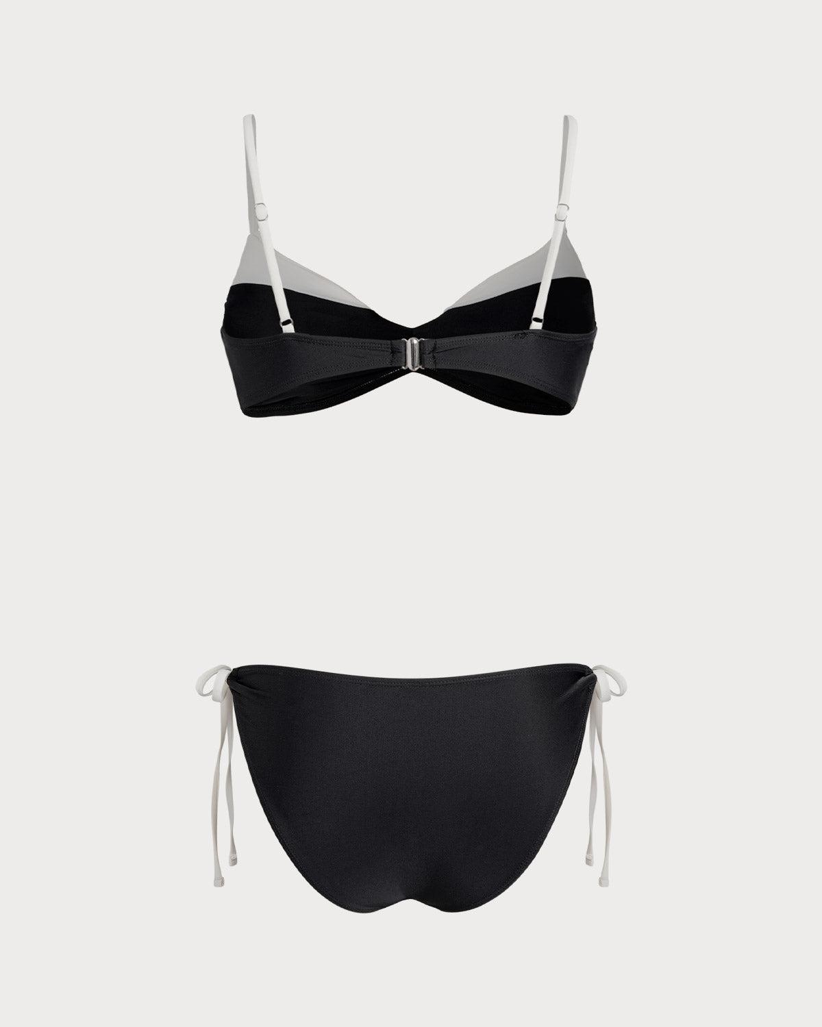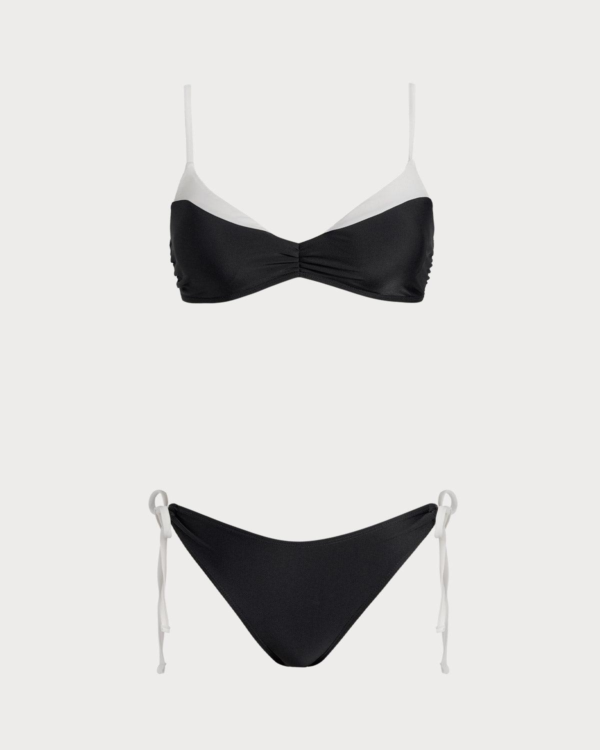 - Back Neckline: Strap - Fabric Stretch: High Stretch - Waist: Natural Waisted - Closure Type: Button Fly - Pattern Type: Solid - Embellishment: Contrasting colors, Tie - Neckline: Straps - Fabric: Polyamide 82.0%, Spandex 18.0% - Lining: Polyamide 82.0%, Spandex 18.0% - Leg Opening: High Cut Leg - Padding: Removable Soft Cups - Bottom Coverage: Minimal Bottom Coverage - Bra Coverage: 3/4 Cup - Top Style: Bralette