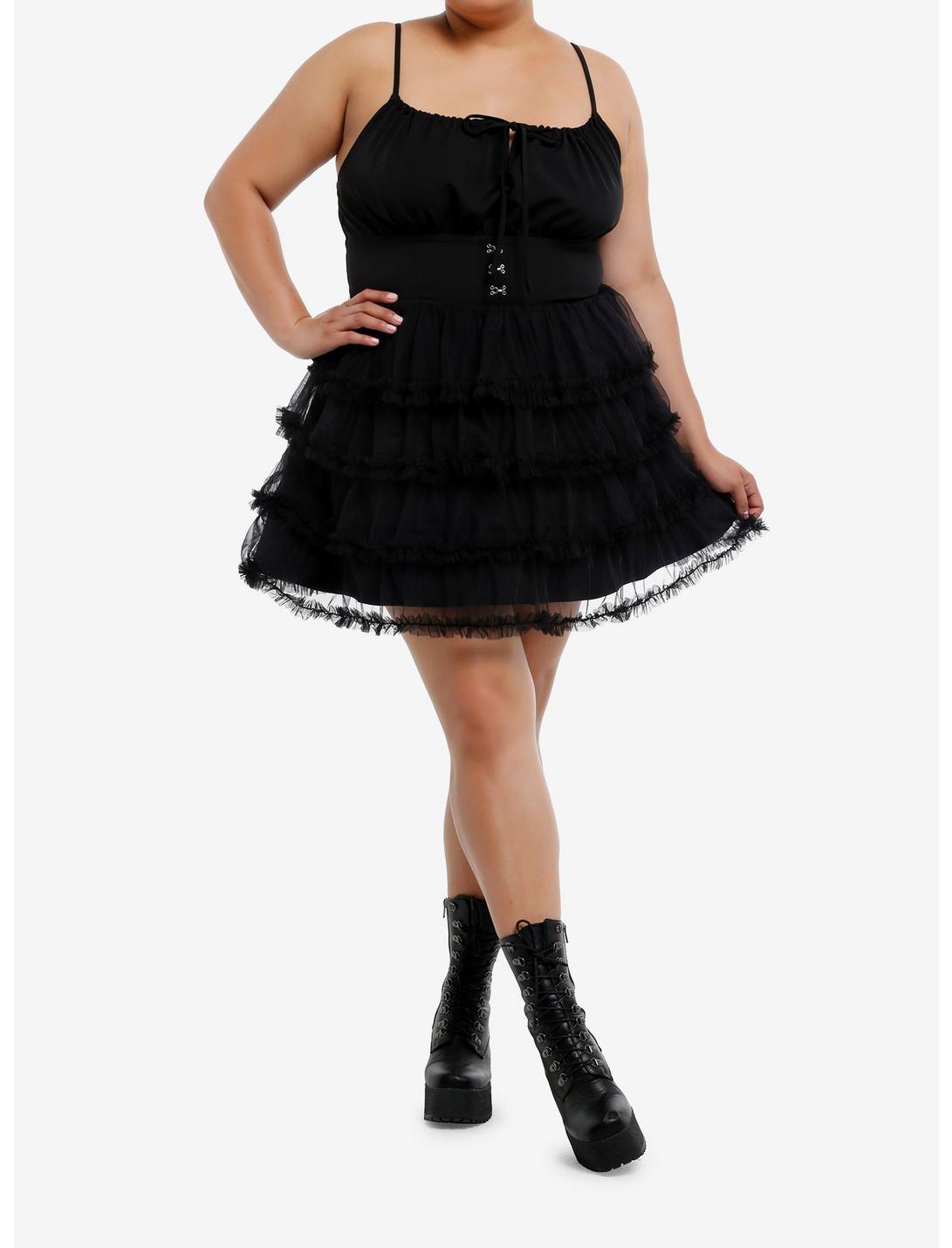Black Corset Tiered Tulle Ruffle Cami Dress Plus Size
