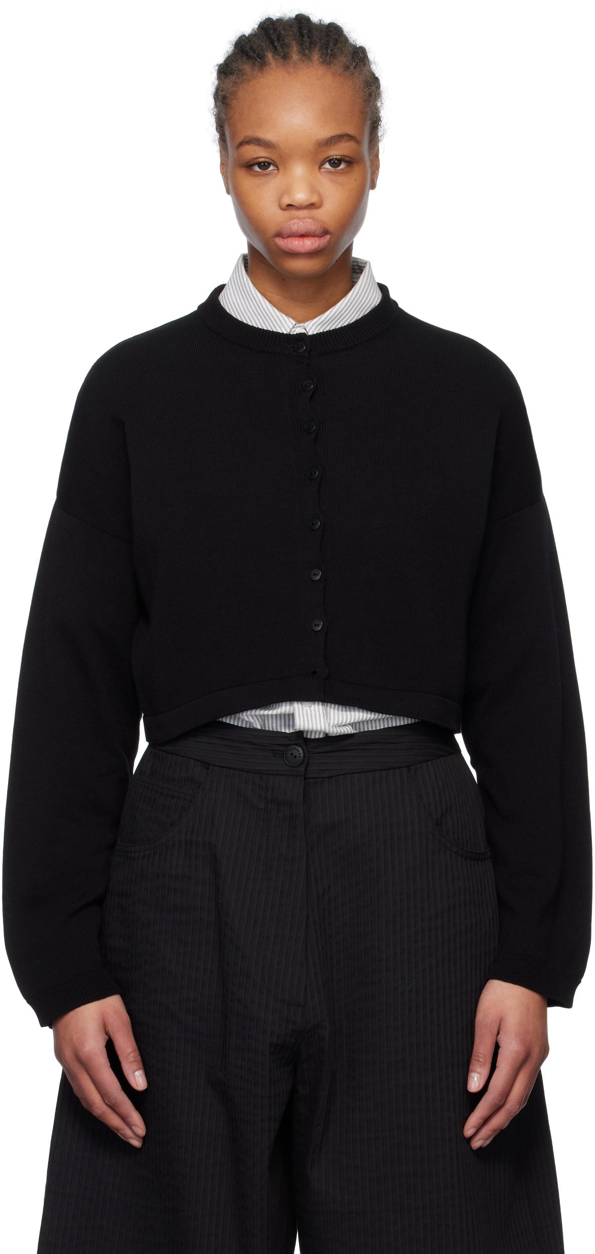 Black Cotton Cropped Cardigan