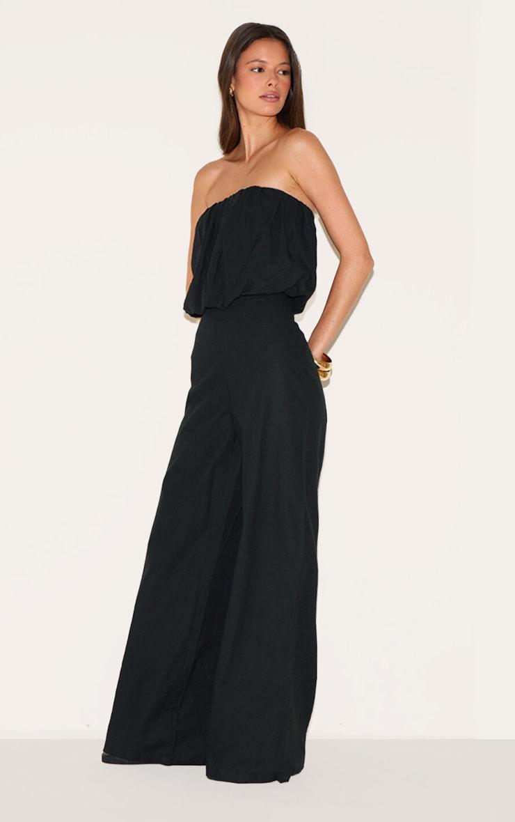 Add this black cotton puffball bandeau straight leg jumpsuit to your wardrobe for a fashion-forward look. With a puffball bandeau upper, this jumpsuit has flowing wide legs. Style it with barely-there heels and chunky bangles for a sleek evening look. Length approx 145cm/57inch (Based on sample size US 4)Model wears size UK 8/ EU 36/ AUS 8/ US 4Model Height - 5ft 7inchp]:!mb-4inch>Brand: PrettyLittleThingCategory: Jumpsuits & PlaysuitsProduct type: Wide Leg JumpsuitColor: BlackMaterial: Cotton PoplinDesign: PlainOccasion: Day