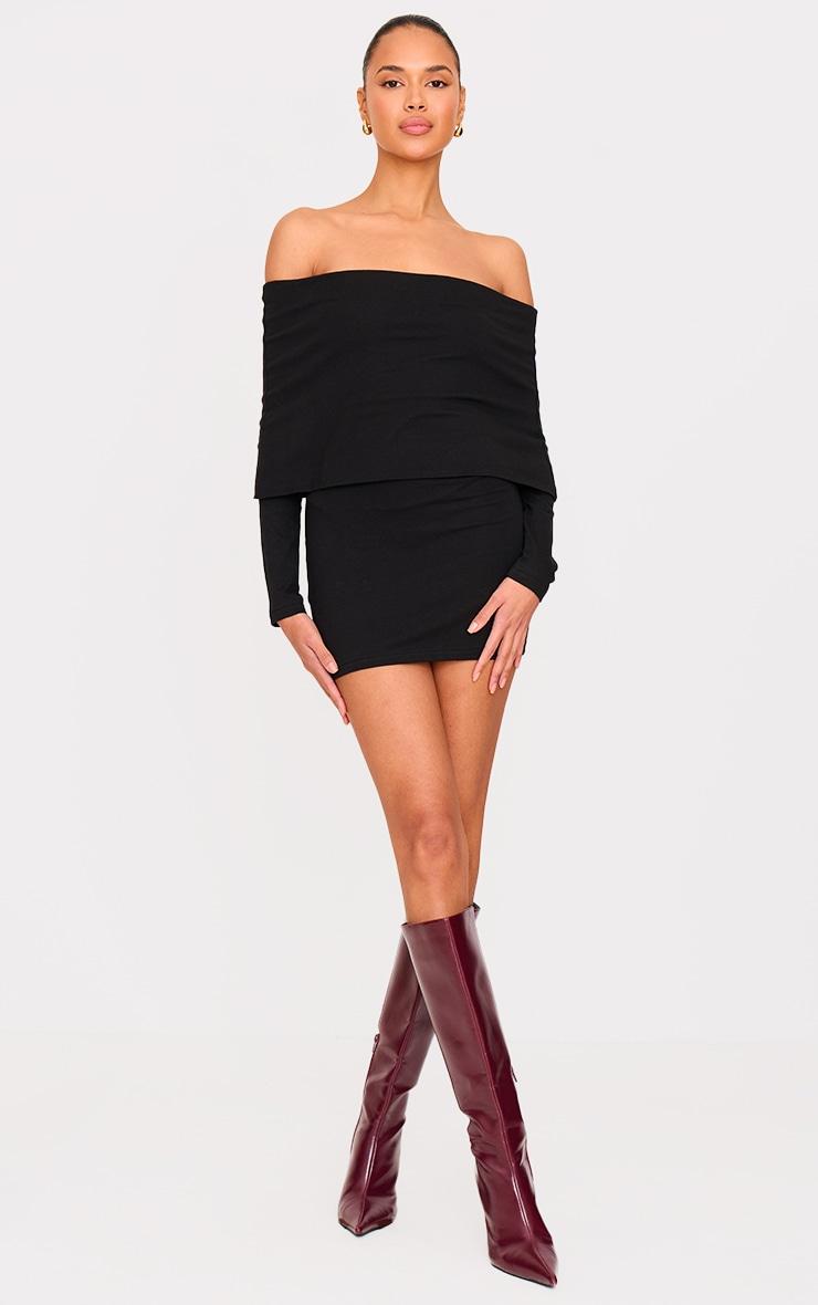 We know you'll be looking effortlessly chic in this black cotton super oversized bardot mini dress. Brought to you in a versatile black shade, with a cosy cotton material and flattering oversized bardot neckline, you really can't go wrong. Style with simple accessories and a pair of boot heels to really make an impact. Length approx 58cm/23inch (Based on a sample size UK 8) Model wears size UK 8/ EU 36/ AUS 8/ US 4Model Height - 5ft 9inchp]:!mb-0inch>Category: DressesProduct type: Bodycon DressColor: BlackMaterial: Cotton JerseyDesign: PlainNeckline: BardotSleeves: LongOccasion: Day