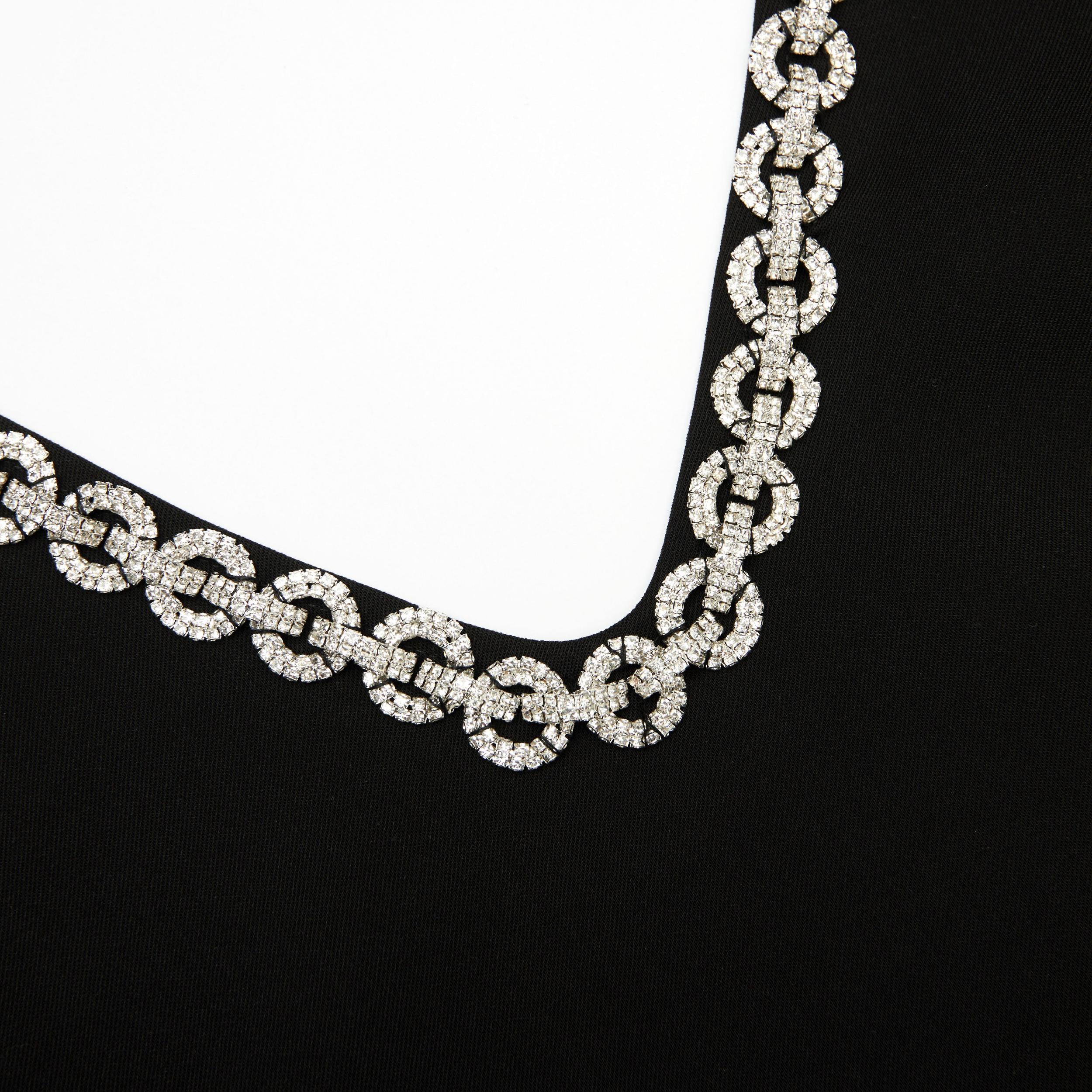 Accessories come included with this crepe mini dress, thanks to crystal link hardware around its neckline. The minimalist silhouette exudes chic elegance and plays well with heels and flats alike.True to sizeRelaxed fitConcealed zip closure at backFunctional pockets at sidesCrystal chain trimModel is 5ft10/178cm and wears a size UK 6