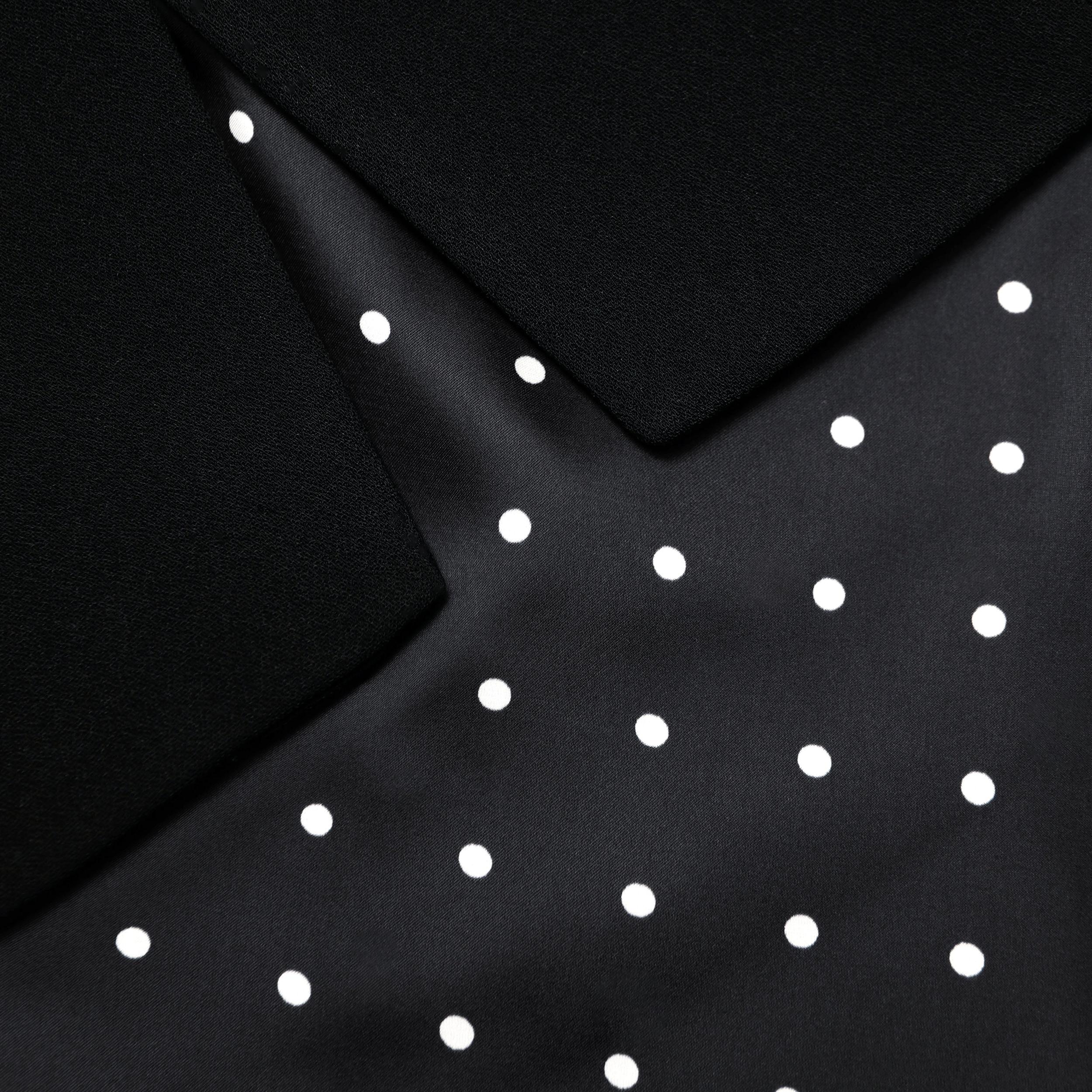 Polished yet playful, a classic tuxedo jacket meets a flowing polka dot skirt in this black maxi number. Its tonal belt cinches in the form – style with a sleek updo and heels for effortless chic.Fitted styleThis style has minimal stretchButton closure down frontShoulder padsRemovable beltModel is 5ft10/178cm and wears a size UK 6
