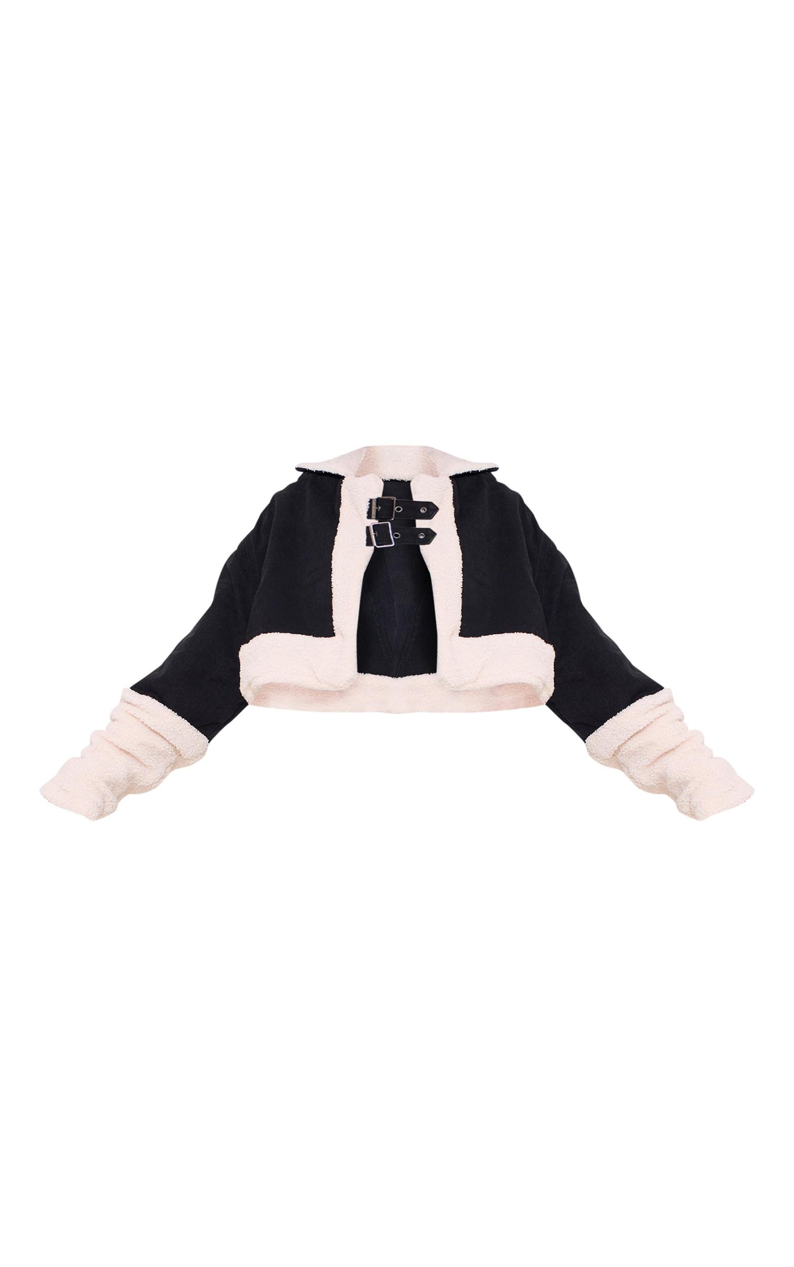 This is the perfect coat for some new season layering. Featuring a black denim material with a borg contrast detailing and a cropped aviator design, we are obsessed. Team with your outfit of the day and shoes to suit the occasion for a vibe like no other. Length approx 38cm/15 (Based on a sample size UK 8) Model wears size UK 8/ EU 36/ AUS 8/ US 4 Model Height - 5ft 8