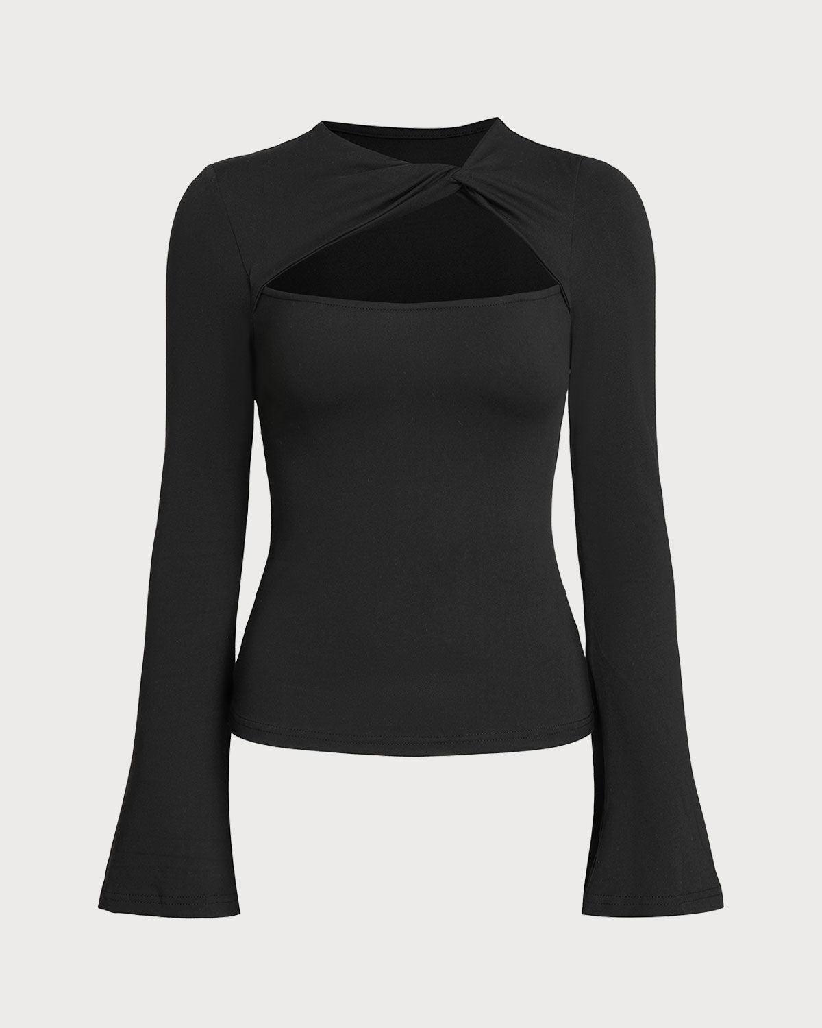 - Occasion: Daily - Style: Casual - Season: Fall, Winter - Fabric Stretch: Medium Stretch - Sleeve Length: Long Sleeves - Sleeve Type: Bell Sleeve - Pattern Type: Solid - Embellishment: Cut Out, Twist - Neckline: Round Neck - Fit: Slim - Fabric: Polyester 95.0%, Spandex 5.0% - Material: Knit