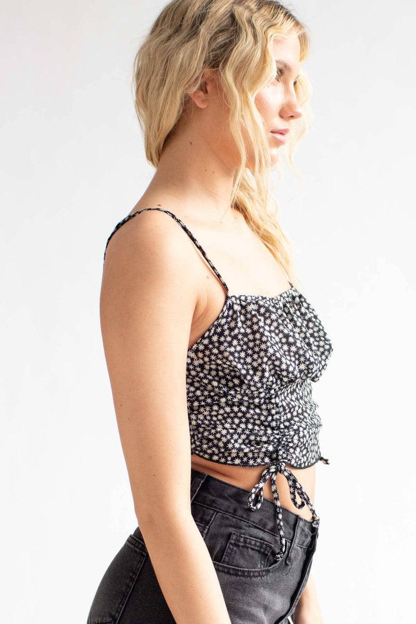 Black Daisy Milkmaid Ruched Crop Cami