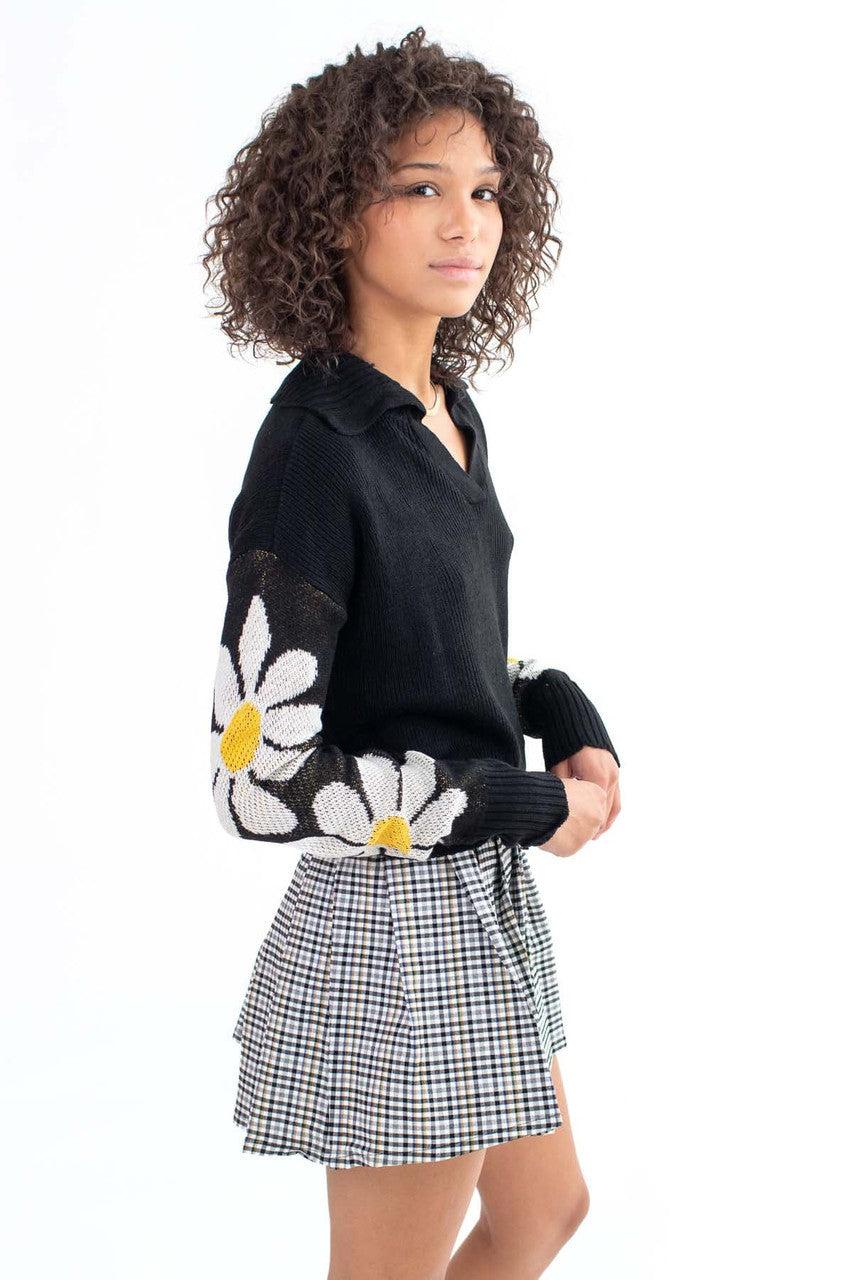 Womens Plus Size Daisy Cable Knit Crew Neck Sweater