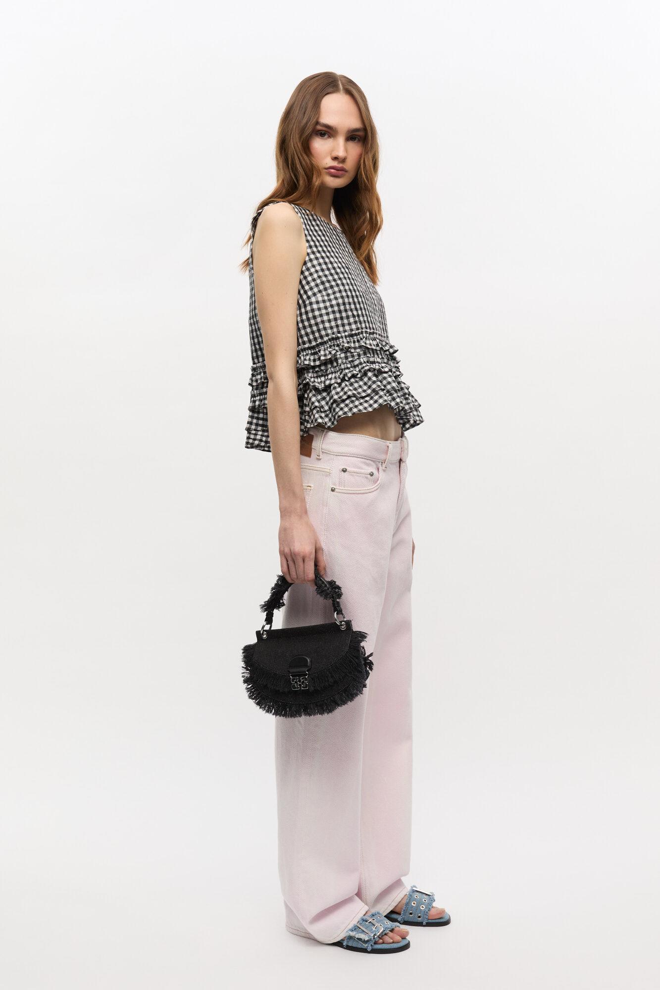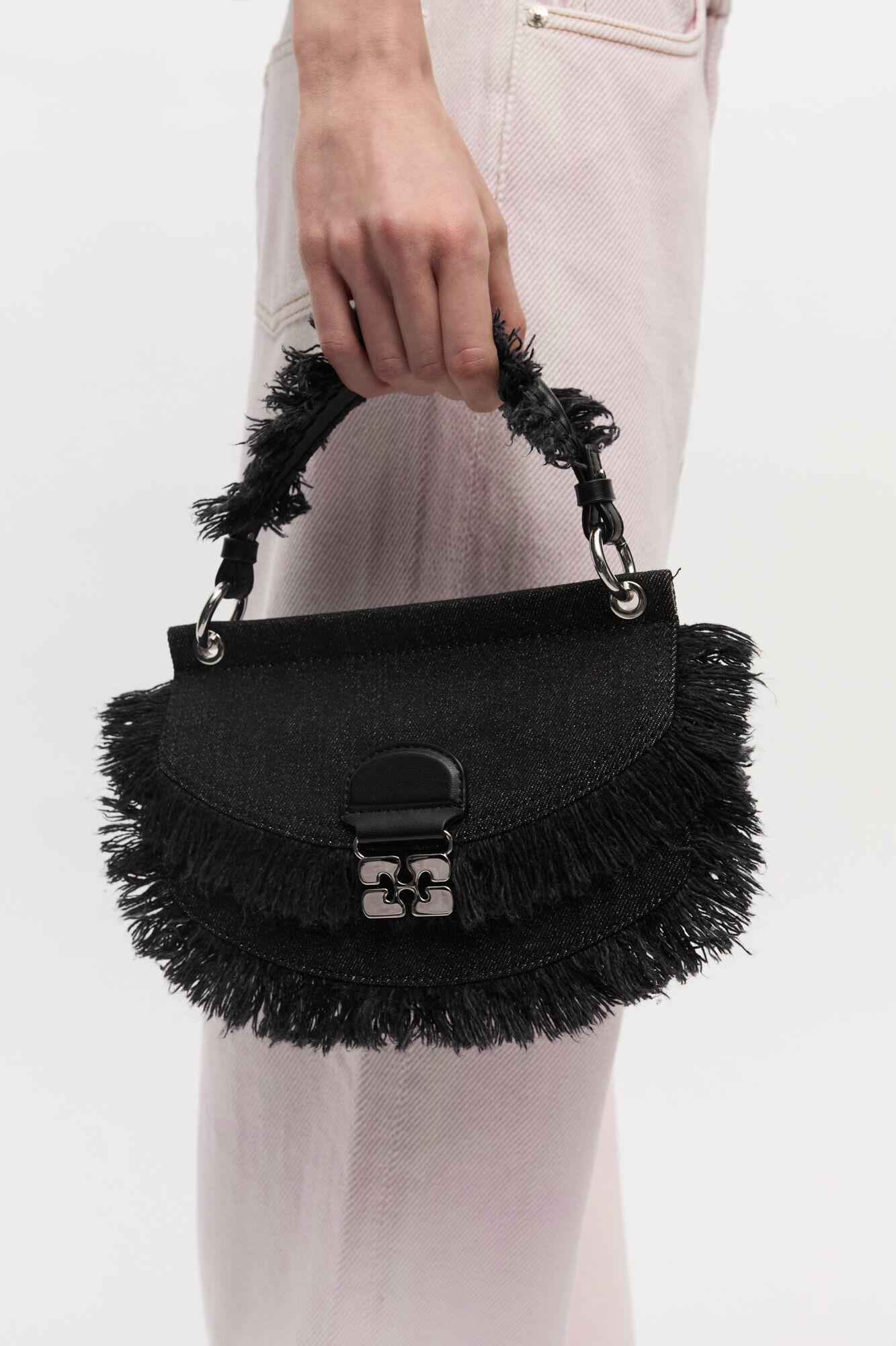 Black Denim Mini Top Handle Apo-G Bag