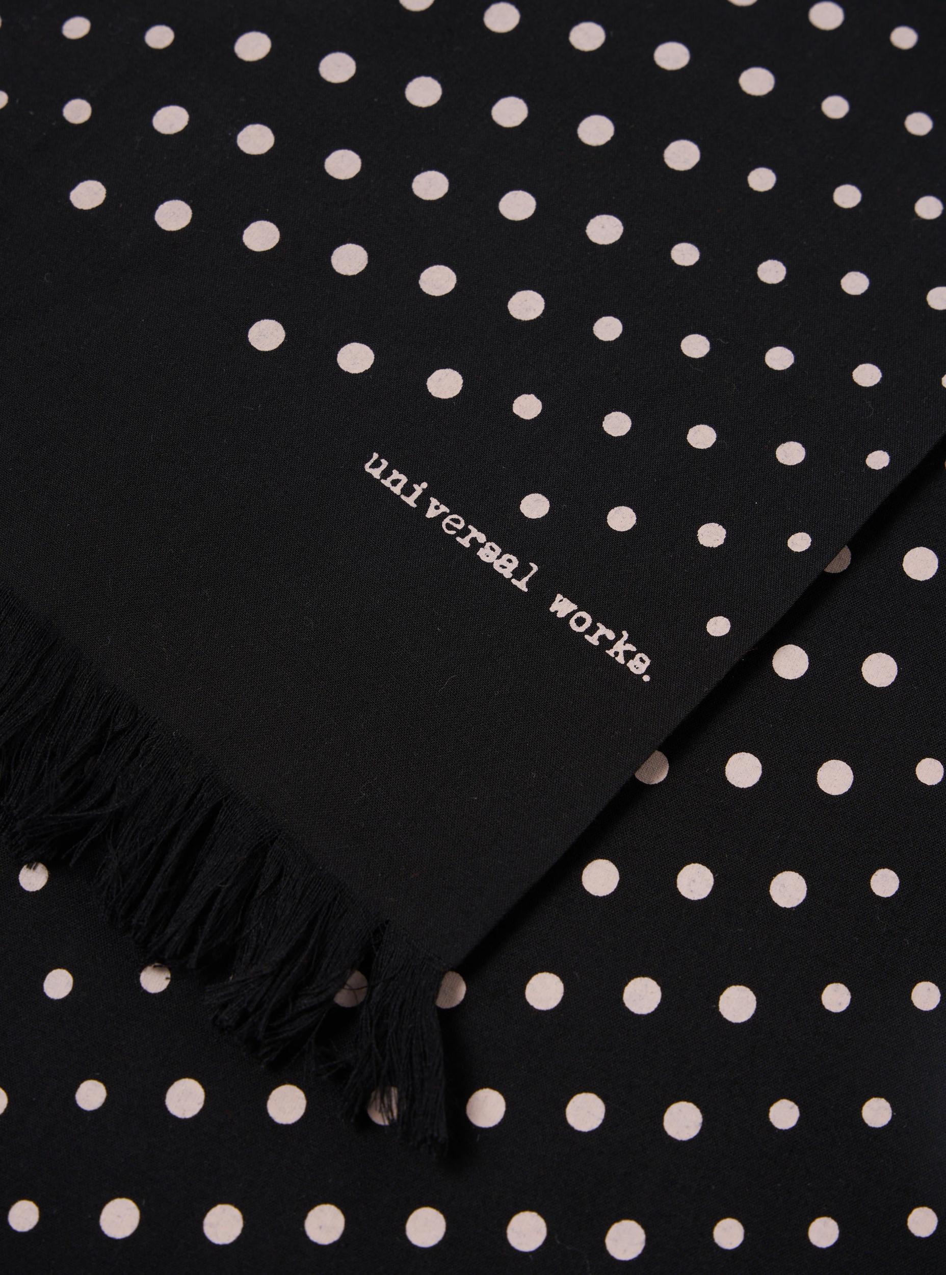 12 years and going strong, it's been in every UW collection and always will be. • Product Code: 00157. • Tassel ends. • Repeating irregularly-sized polka dots. • Fabric Content: 52% Viscose, 48% Polyester. • Washcare: Wash at 30 degrees. Do not bleach. Do not tumble dry. Cool iron. Do not dry clean. Wash like colours together. Please be aware that our ties and pocket squares will not be an exact matching shade. Both are made from different fabric compositions and therefore there might be slight colour variations between the two. [sizing] Sizing: 20cm x 126cm.