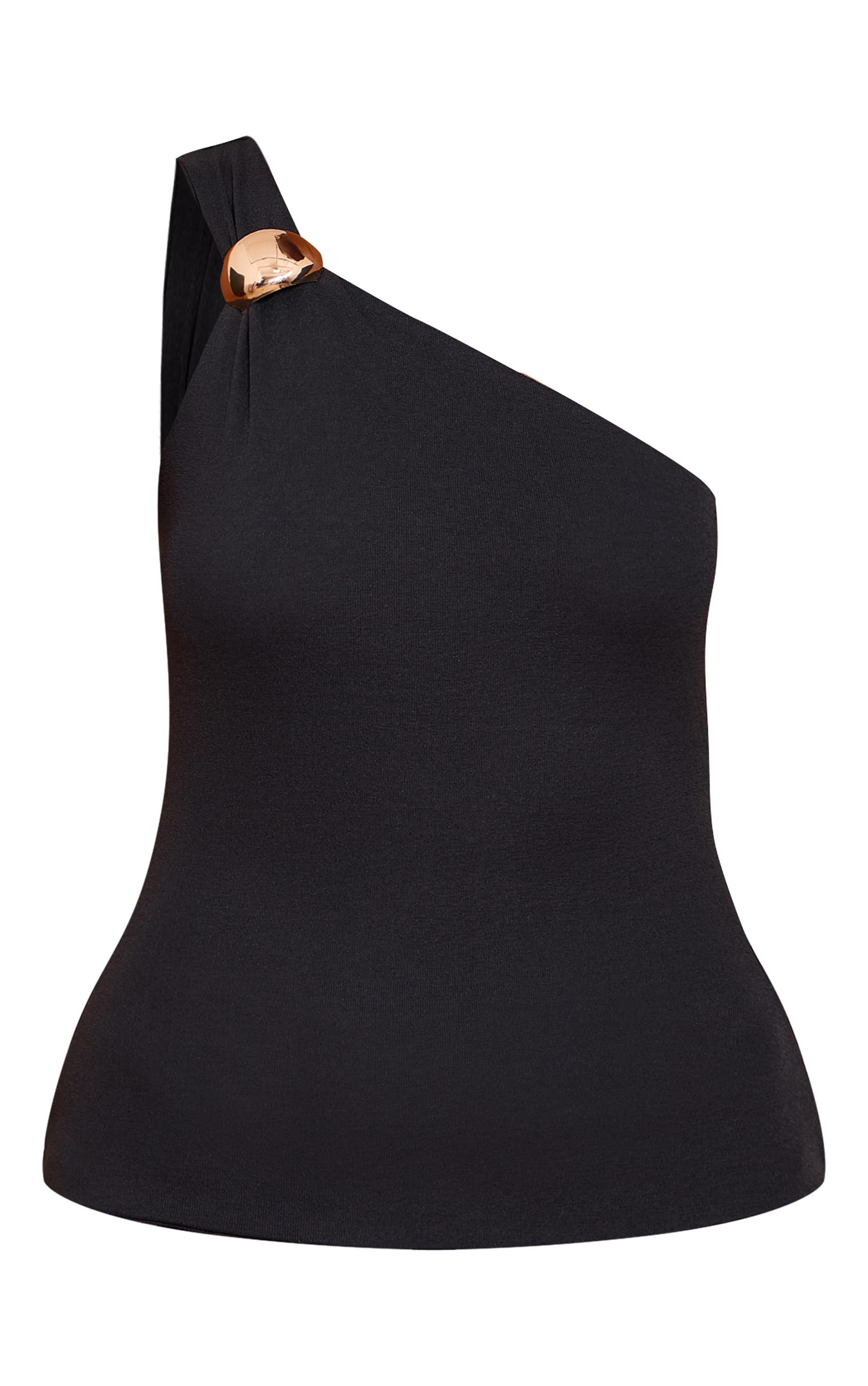A modern cut anchors your evening look with confident precision. The black double layer burnout mesh one shoulder trim Vest top features a distinctive asymmetric neckline, highlighted by an artful gold-tone ring detail at the shoulder strap that gathers the fabric for a refined finish. Pair it with sharp tailored pants and pointed ankle boots for a sophisticated ensemble that transitions seamlessly through the night.Length approx 48.5cm/19inch (Based on sample size US 4)Model wears size UK 8/ EU 36/ AUS 8/ US 4Model Height - 5ft 9inchp]:!mb-4inch>Brand: PrettyLittleThingCategory: TopsProduct type: Vest TopColor: BlackMaterial: MeshDesign: PlainNeckline: AsymmetricSleeves: SleevelessOccasion: Evening
