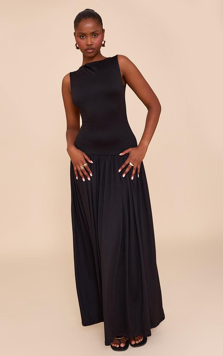 Make a statement in this black double layer jersey dropped waist maxi dress. Designed with a smooth black material with a double layer detail and a dropped waist fit. Team this maxi dress with a pair of sandals, a statement bag and a pair of sunglasses to complete the look.Length approx 155cm/61inch (Based on sample size US 4)Model wears size UK 8/ EU 36/ AUS 8/ US 4Model Height - 5ft 9inchp]:!mb-4inch>Brand: PrettyLittleThingCategory: DressesProduct type: Shift DressColor: BlackMaterial: Single JerseyDesign: PlainNeckline: CrewSleeves: SleevelessOccasion: Day