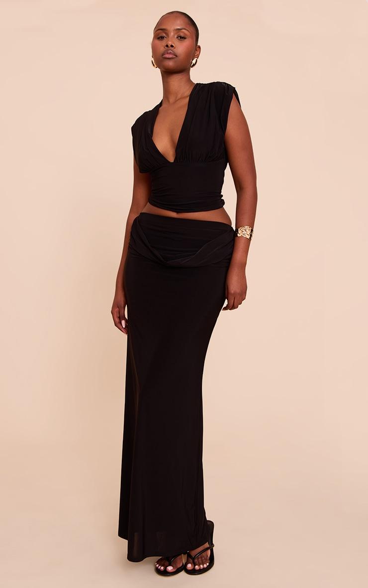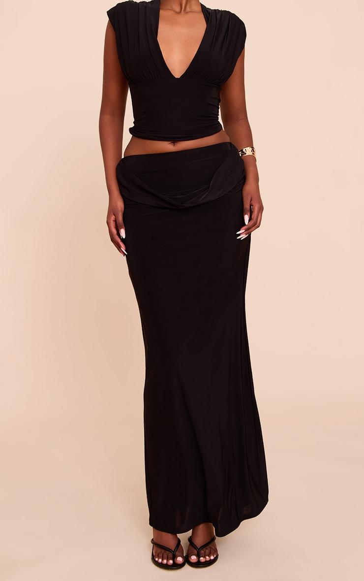 Refine your silhouette with this black double layer slinky drape waist maxi skirt. Crafted from black double layer material with an elegant drape at the waist, this skirt exudes effortless evening appeal. Style with a chic top and heels for a sleek night-out fit.Length approx 108cm/42.5inch (Based on sample size US 4)Model wears size UK 8/ EU 36/ AUS 8/ US 4Model Height - 5ft 9inchp]:!mb-4inch>Brand: PrettyLittleThingCategory: BottomsProduct type: Maxi SkirtColor: BlackMaterial: Slinky JerseyDesign: PlainOccasion: Evening