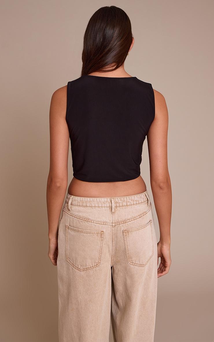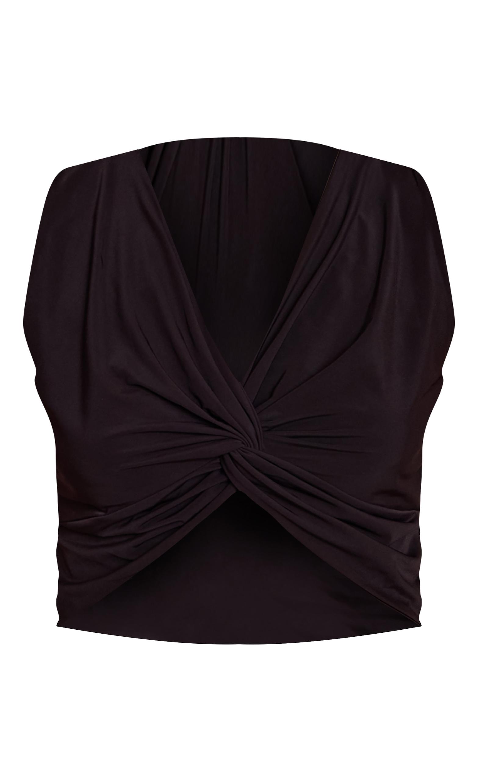 Redefine your evening rotation with a piece that balances structure and allure; the black double layer twist detail cami top offers an elevated aesthetic. Its plunging v-neckline and artful twist detail create a distinctive cropped silhouette, perfectly framing the waist for an impactful finish. For an undeniable evening look, pair this black cami with high-waisted tailored pants and sleek black kitten heels, completing the ensemble with some delicate statement rings and a minimalist clutch, ready to command attention with quiet confidence.Length approx 38cm/15inch (Based on sample size US 4)Model wears size UK 8/ EU 36/ AUS 8/ US 4Model Height - 5ft 7inchp]:!mb-4inch>Brand: PrettyLittleThingCategory: TopsProduct type: Vest TopColor: BlackMaterial: Slinky JerseyDesign: PlainNeckline: AsymmetricSleeves: SleevelessOccasion: Evening