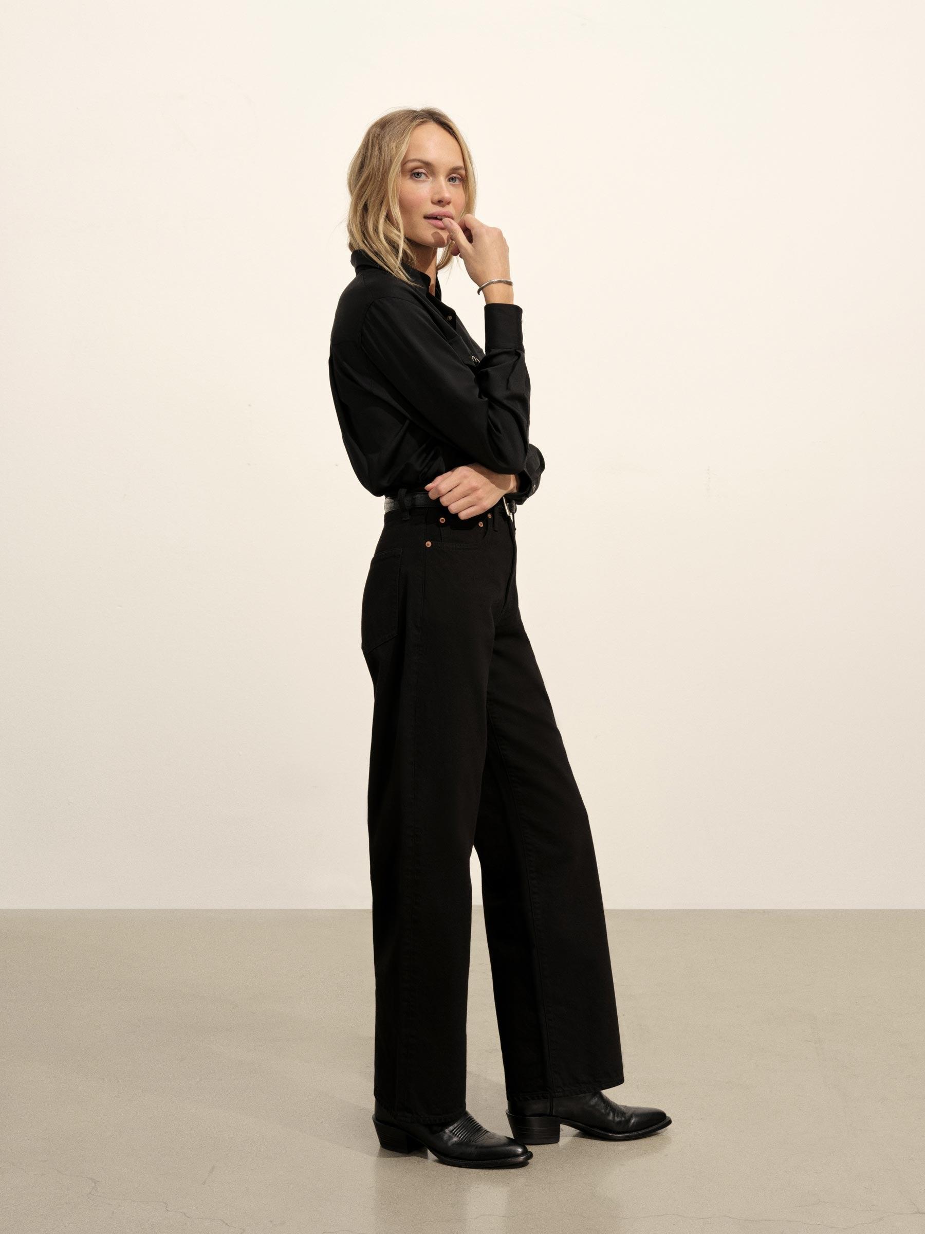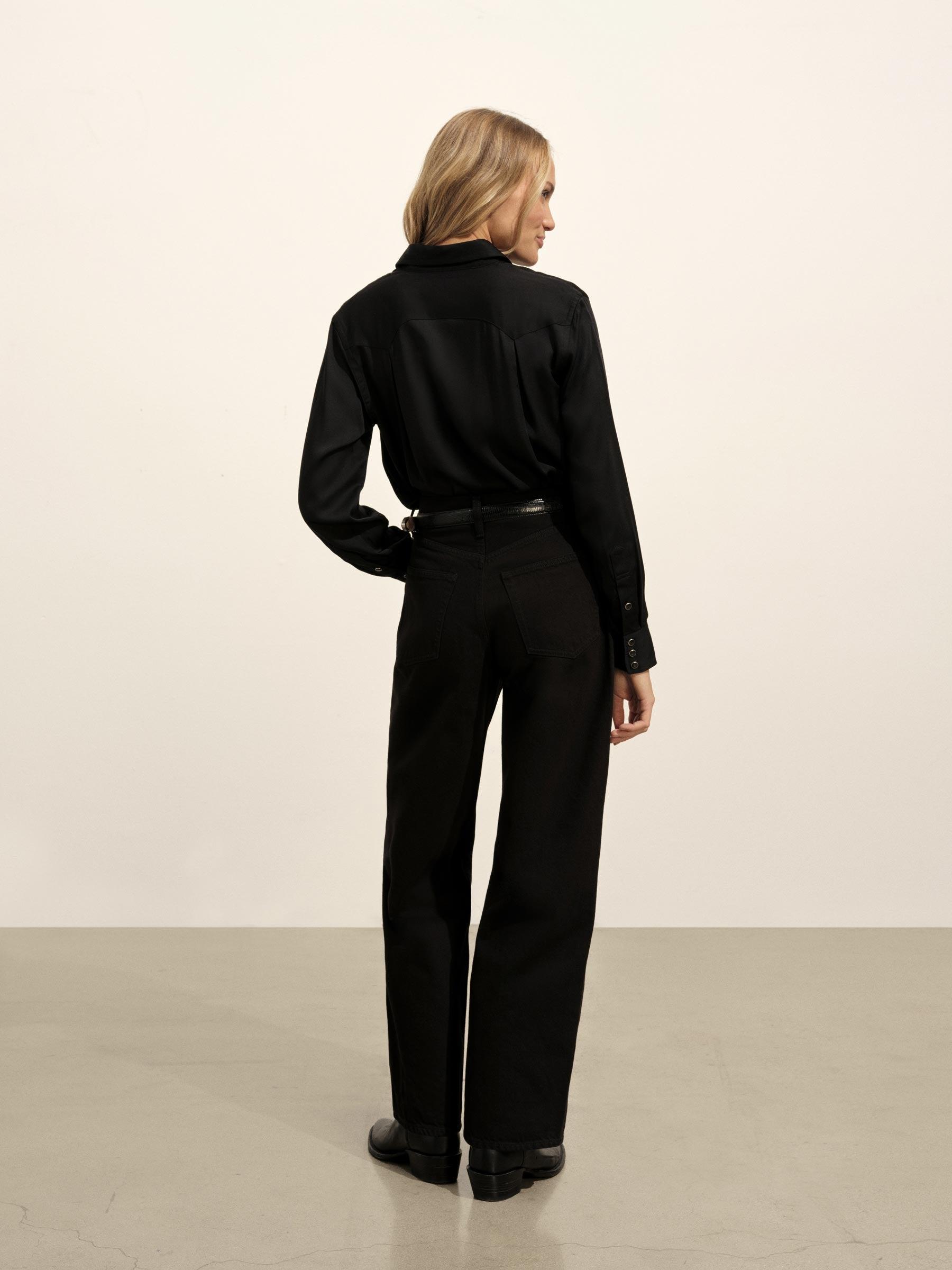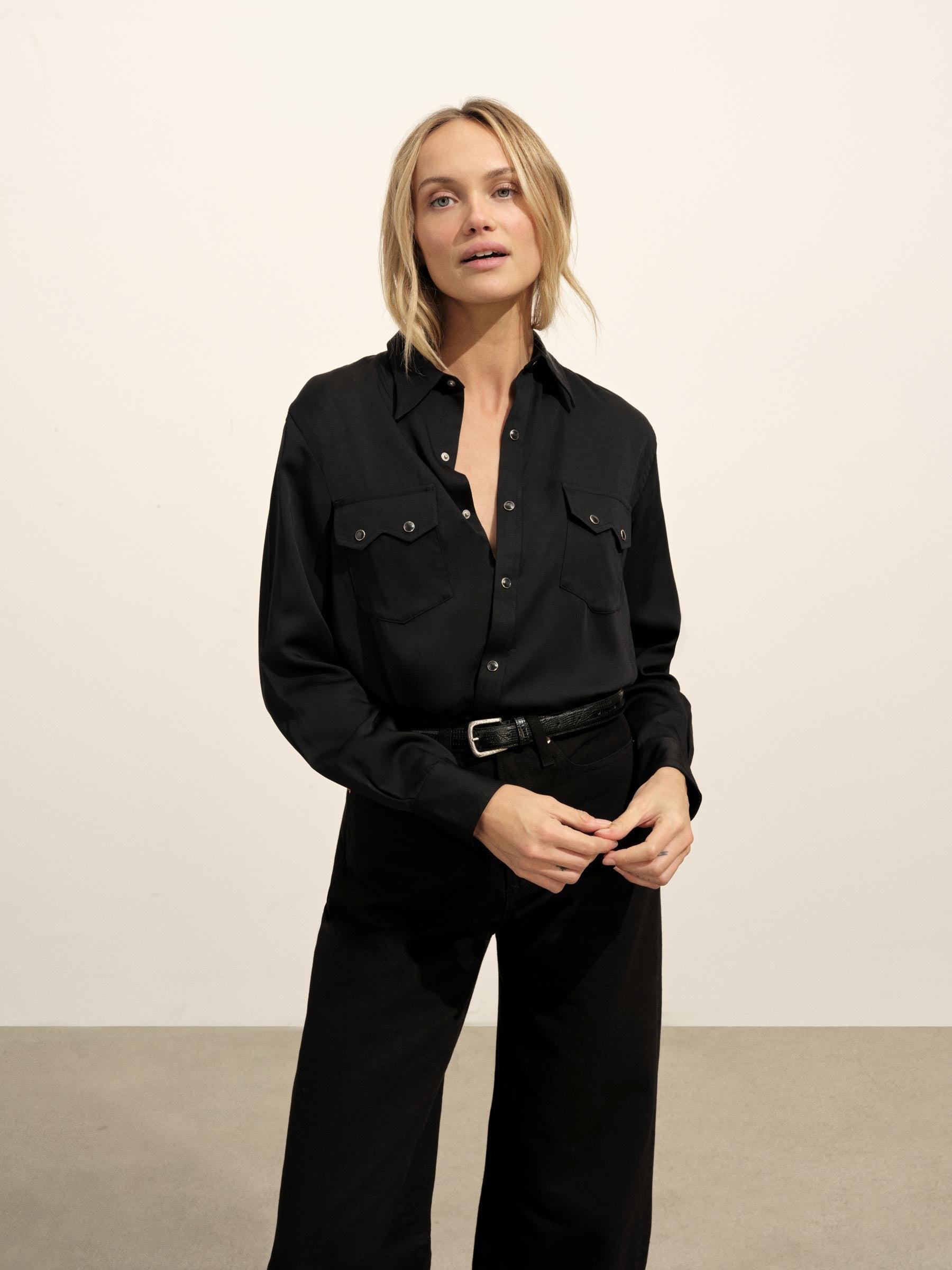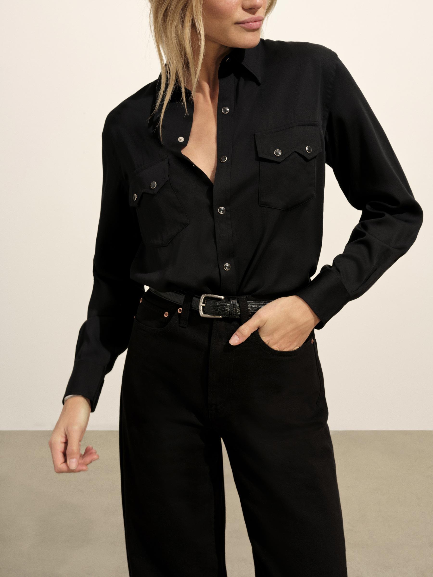 Black Duskdream Satin Western Shirt