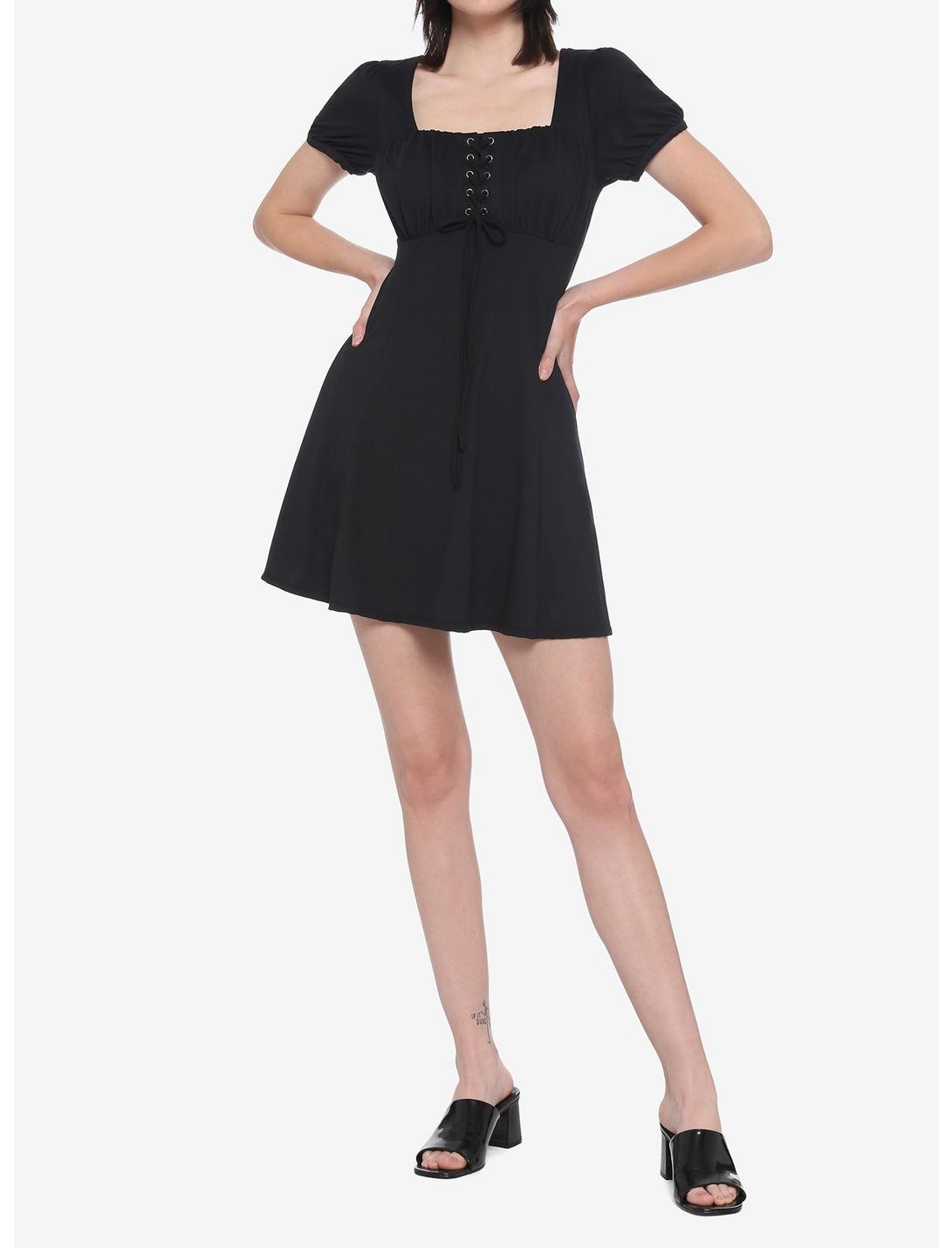 Go for a timeless look in this Empire silhouette dress. It has ruched lace-up chest detail and ruched sleeves. Features an Empire waistline and side seam hip pockets.95% polyester; 5% spandexWash cold; dry lowEmpire waist; lace-up detailSide seam pocketsImportedListed in junior sizesModel wears size Small; 33" long