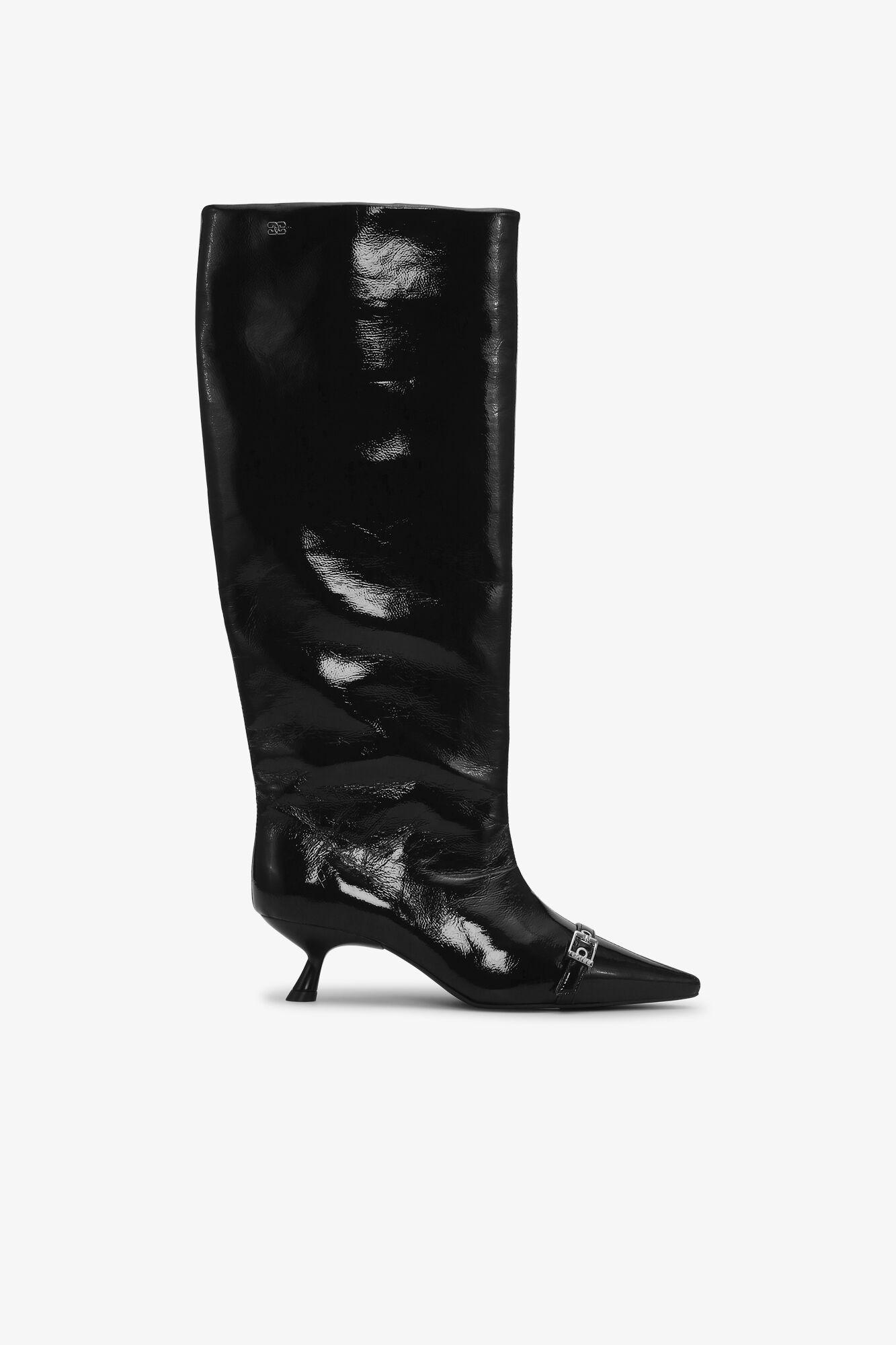 Black Eyelets Slouchy High Shaft Boots