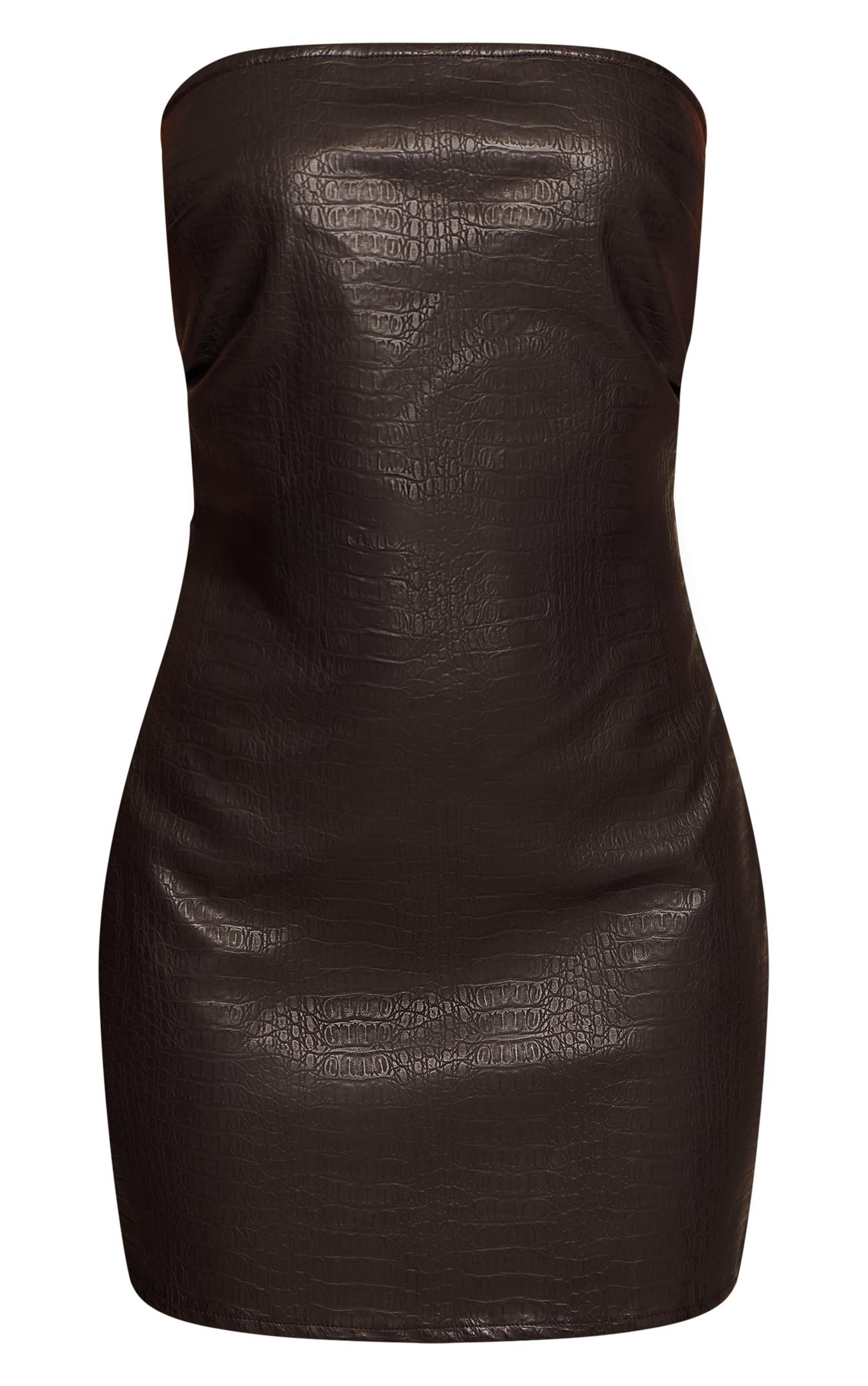 Own the night in the black faux leather bandeau croc mini dress. This piece boasts a bandeau neckline and a sleek croc-textured bodycon mini fit. It's essential for making an impression on your next evening out, from exclusive events to dinner dates. Finish with fresh black heels and a sleek clutch bag for undeniable impact.Length approx 58.5cm/23inch (Based on sample size US 4)Model wears size UK 8/ EU 36/ AUS 8/ US 4Model Height - 5ft 6inchp]:!mb-4inch>Brand: PrettyLittleThingCategory: DressesProduct type: Bodycon DressColor: BlackMaterial: Cotton JerseyOccasion: Evening