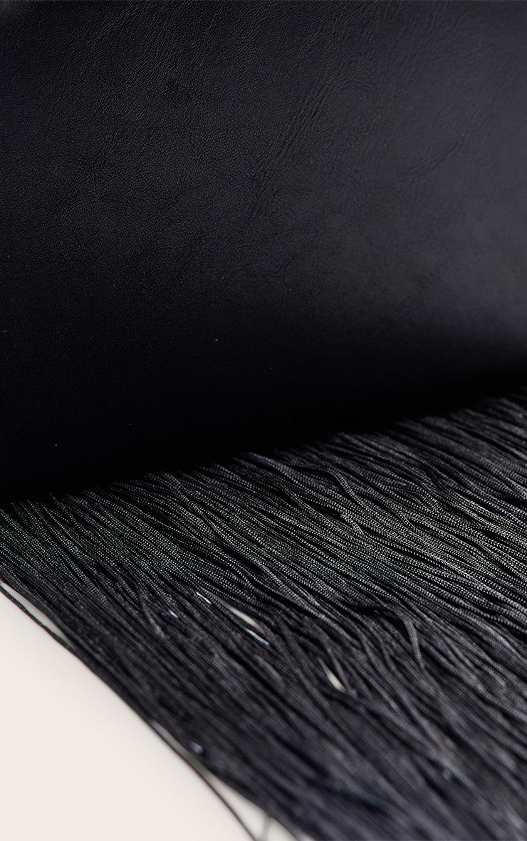 Make a confident entrance with the statement-making black faux leather fringe tassel hard clutch. Its structured hard-box silhouette is elevated by dramatic fringing and a sleek gold-tone fastening. This essential accessory is perfect for making an impact at any evening event. Pair it with a sleek wide-leg jumpsuit, sharp ankle boots, and delicate silver jewelry for an effortlessly polished look. Approx Height: 10cm/4inch Approx Width: 18cm/7inch Approx Depth: 4cm/1.5inchp]:!mb-4inch>Brand: PrettyLittleThingCategory: AccessoriesProduct type: ClutchColor: BlackMaterial: Faux LeatherOccasion: Evening