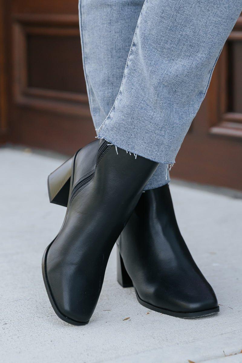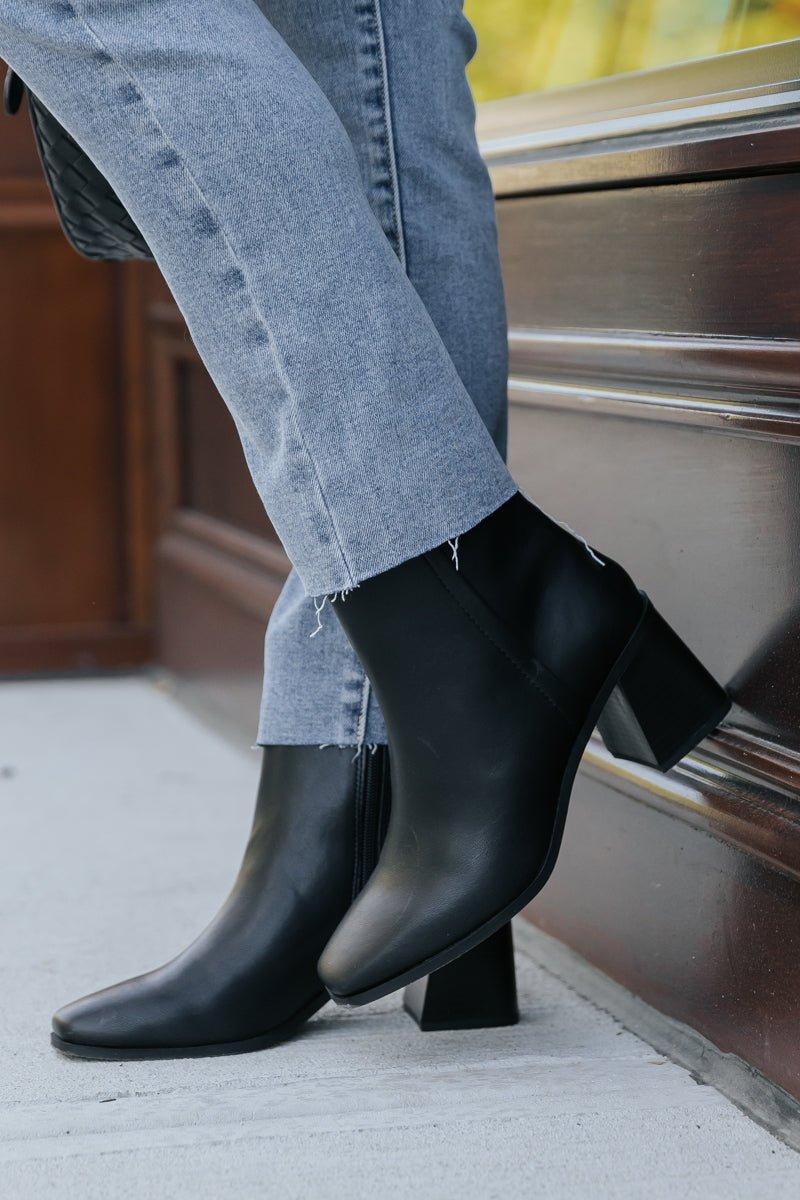 Elevate your style with these Black Faux Leather Heeled Ankle Booties! These booties feature a sleek and versatile black design, perfect for adding a touch of sophistication to any outfit. The sturdy and comfortable heel provides both style and stability, making these booties a must-have addition to your fall wardrobe.