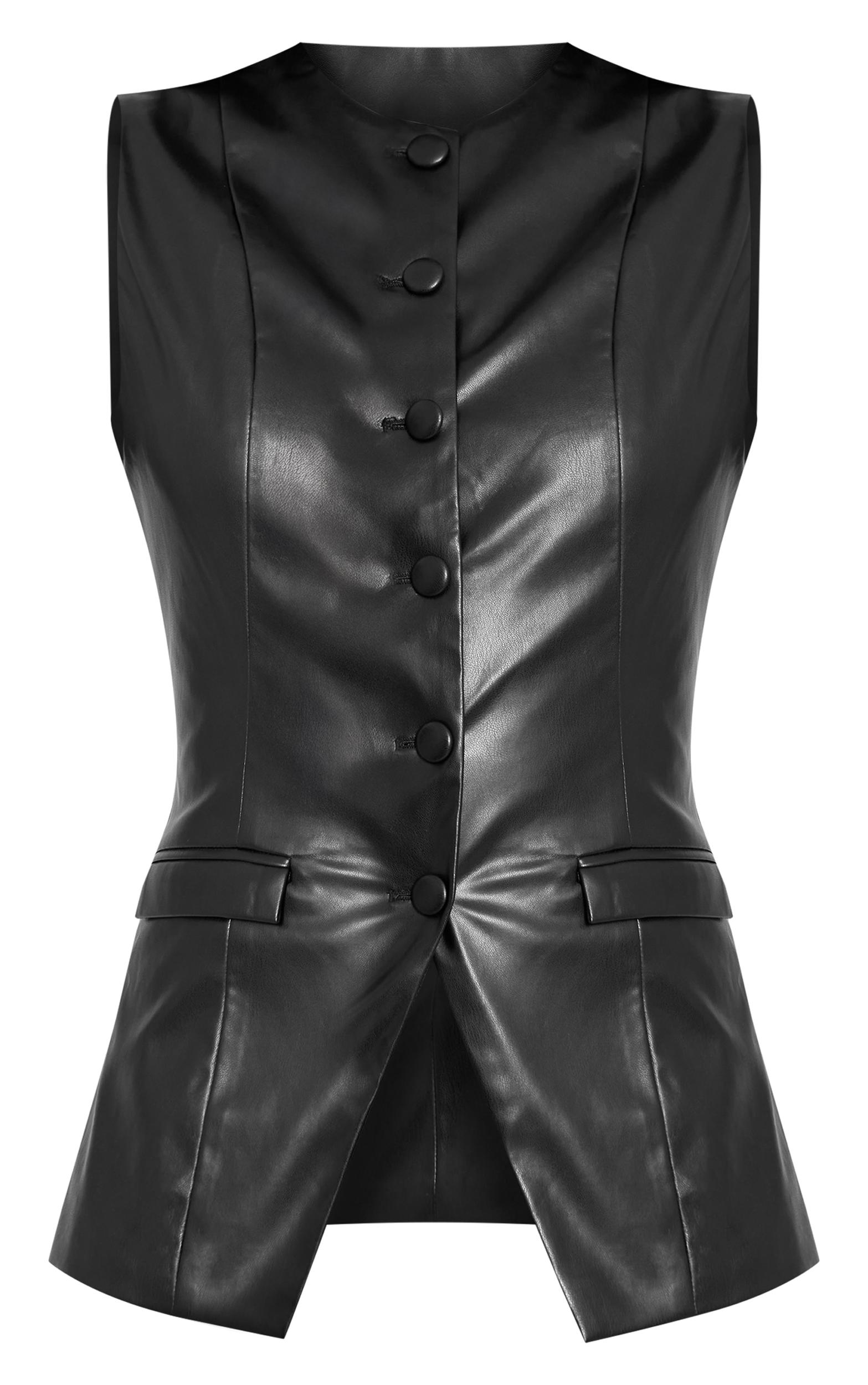 The black faux leather longline vest is an elevated layering piece with a sharp, structured silhouette. Made from premium faux leather, it’s ideal for adding edge to any outfit. Wear it over maxi dresses, jumpsuits, or wide-leg pants to create a modern, fashion-forward look that blends structure with versatility.Length approx 48.5cm/19inch (Based on sample size US 4)Model wears size UK 8/ EU 36/ AUS 8/ US 4Model Height - 5ft 9inchp]:!mb-4inch>Brand: PrettyLittleThingCategory: TopsProduct type: WaistcoatColor: BlackMaterial: Faux LeatherOccasion: Evening
