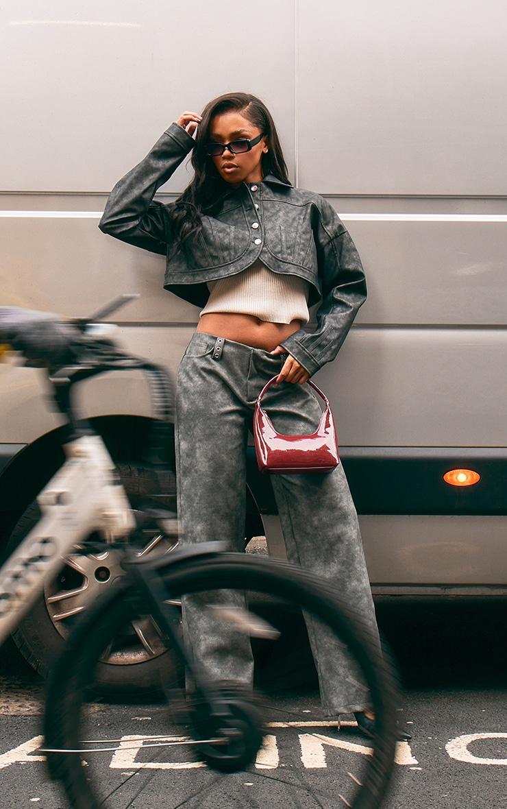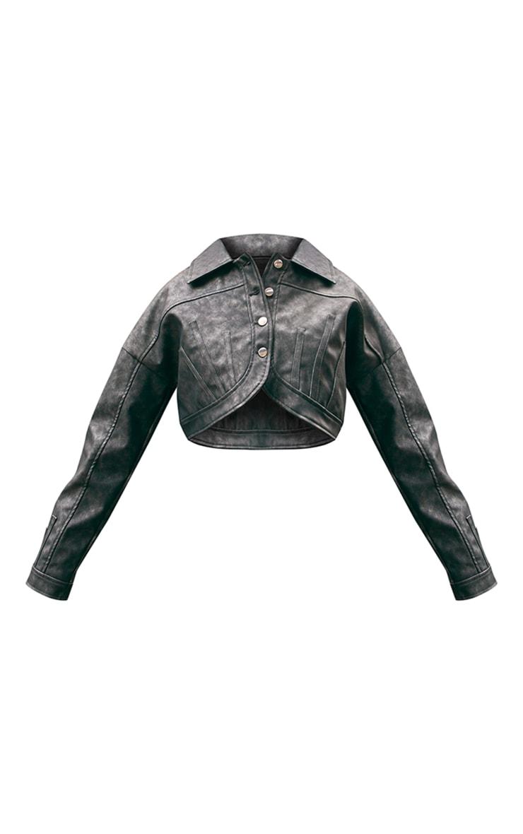 Inject some fresh feels into your wardrobe this season with this black faux leather western detail curved hem jacket and be sure to earn all the style points. With a black faux leather material, western detail and a curved hem design, how could you not be in love? Here to take your look from 0-100, this jacket is everything you're look for and more. Team with washed faux leather pants, heels and a mini bag for a fool-proof finish. Length approx 40.5cm/16inch (Based on a sample size UK 8) Model wears size UK 8/ EU 36/ AUS 8/ US 4Model Height - 5ft 7inchp]:!mb-0inch>Category: OuterwearProduct type: Biker JacketColor: BlackSleeves: LongOccasion: Day