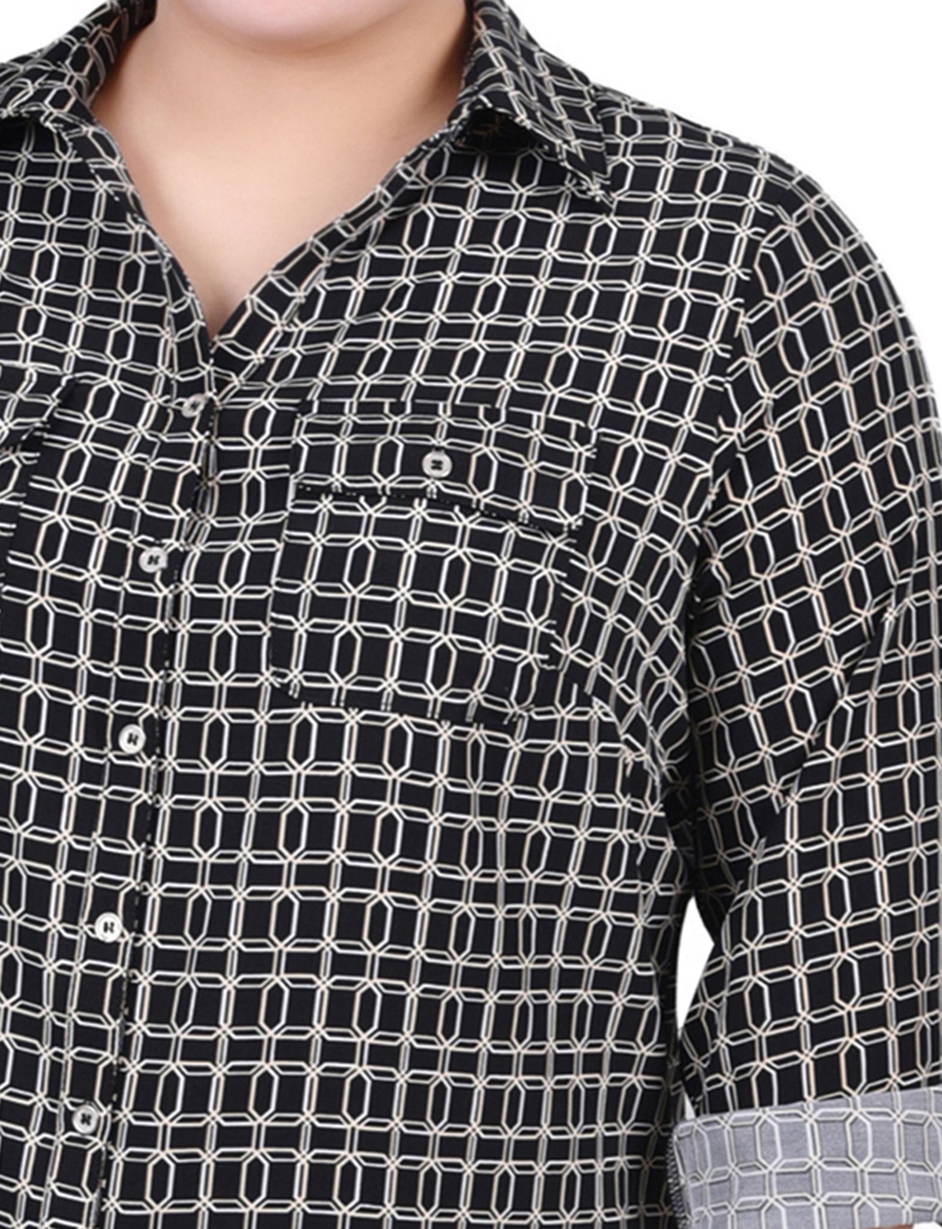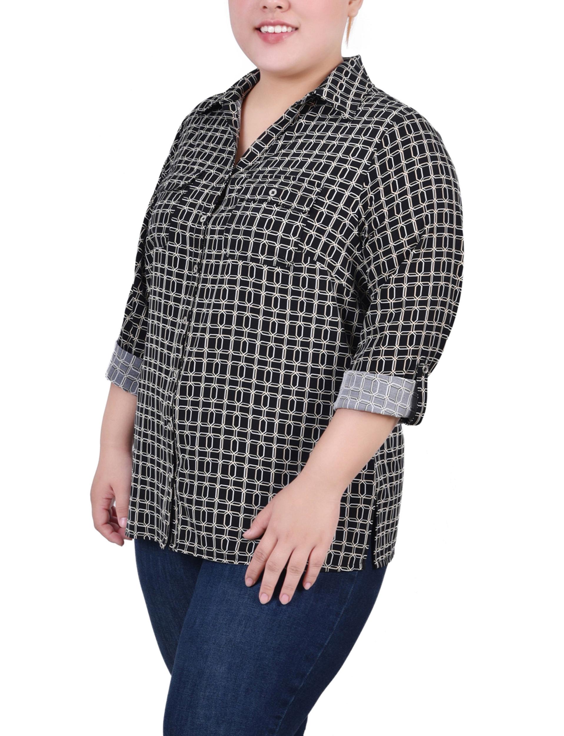 Black White New Iconic 3/4 Roll Tab Blouse With Pockets - Plus Size