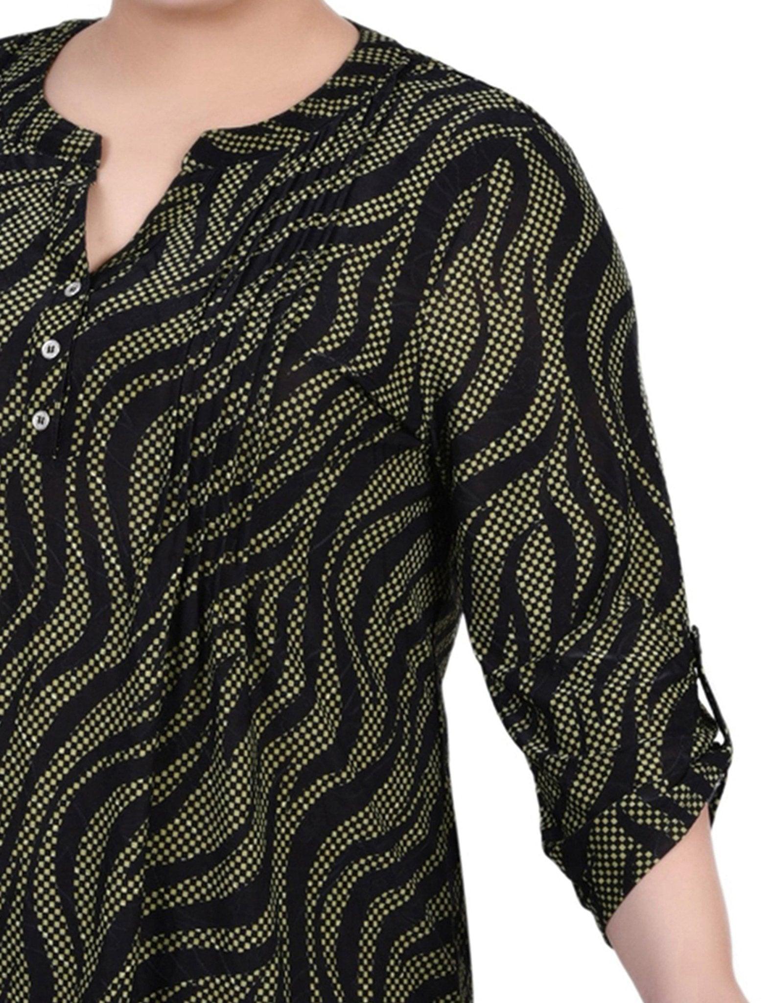 3/4 Length Sleeve Mandarin Collar Top - Plus