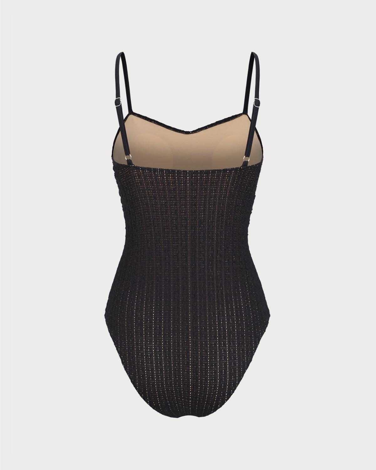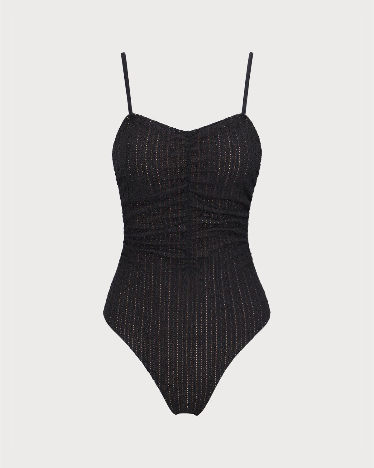Back Neckline: Strap Fabric Stretch: Medium Stretch Bra Coverage: Full Cup Pattern Type: Solid Embellishment: Ruched, Cut Out, Textured, Jacquard Neckline: Square Neck Fabric: Polyester 95.0%, Spandex 5.0% Lining: Polyester 89.0%, Spandex 11.0% Leg Opening: Mid-Cut Leg Padding: Removable Soft Cups Bottom Coverage: Moderate Bottom Coverage Top Style: Bralette Pattern Style: textured