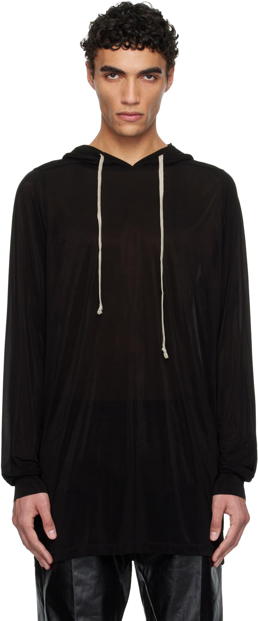 Semi-sheer stretch cupro jersey hoodie. · Drawstring at hood · Offset shoulder seams · Central seam at back Supplier color: Black