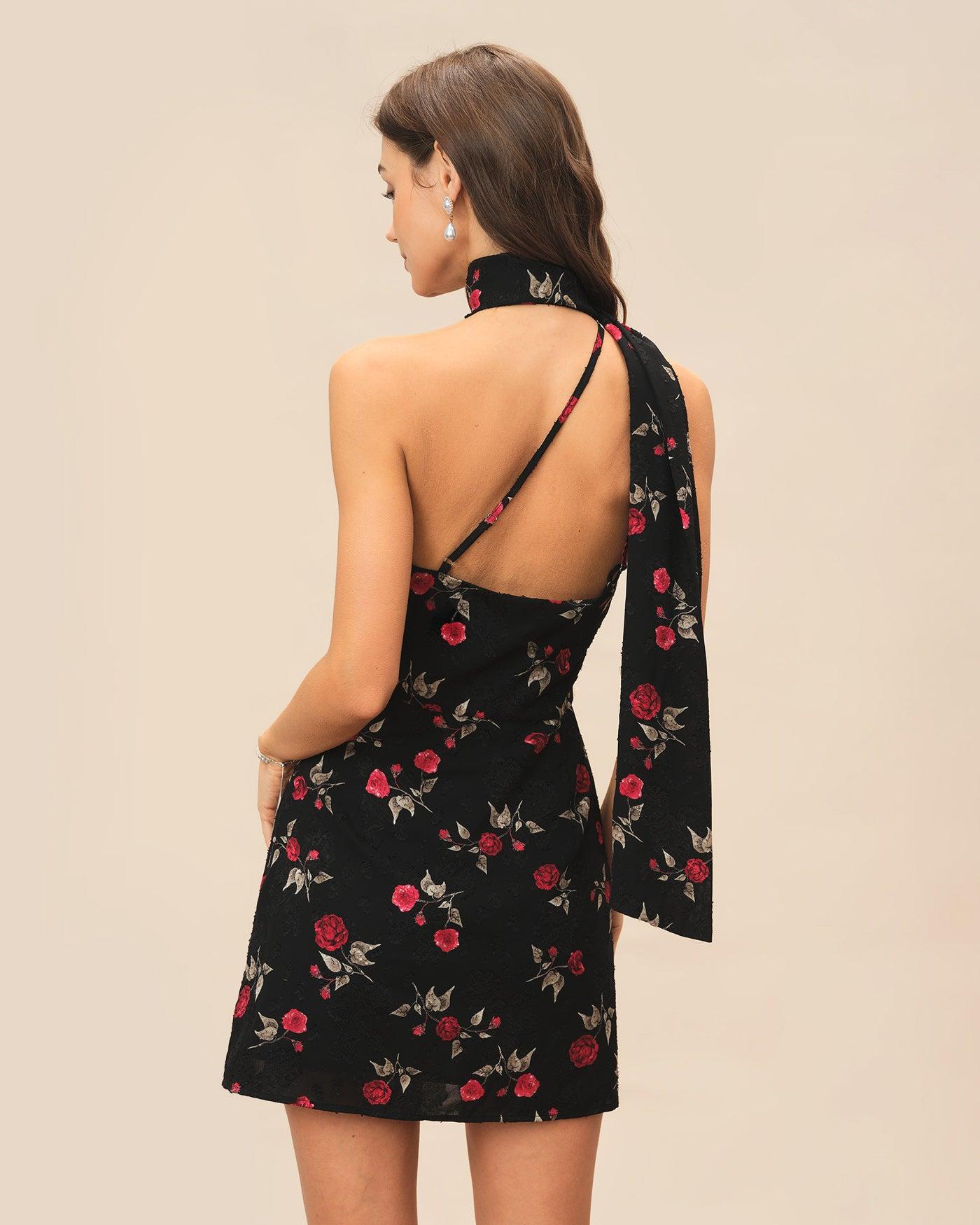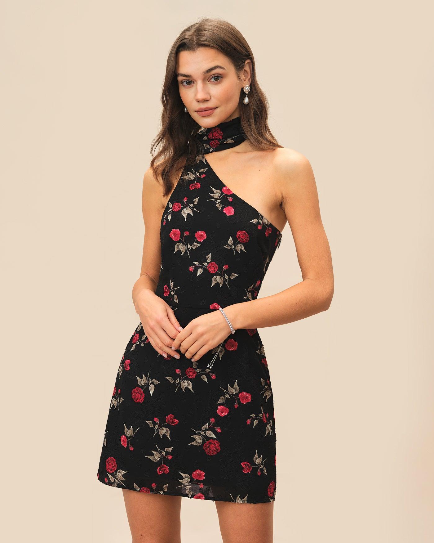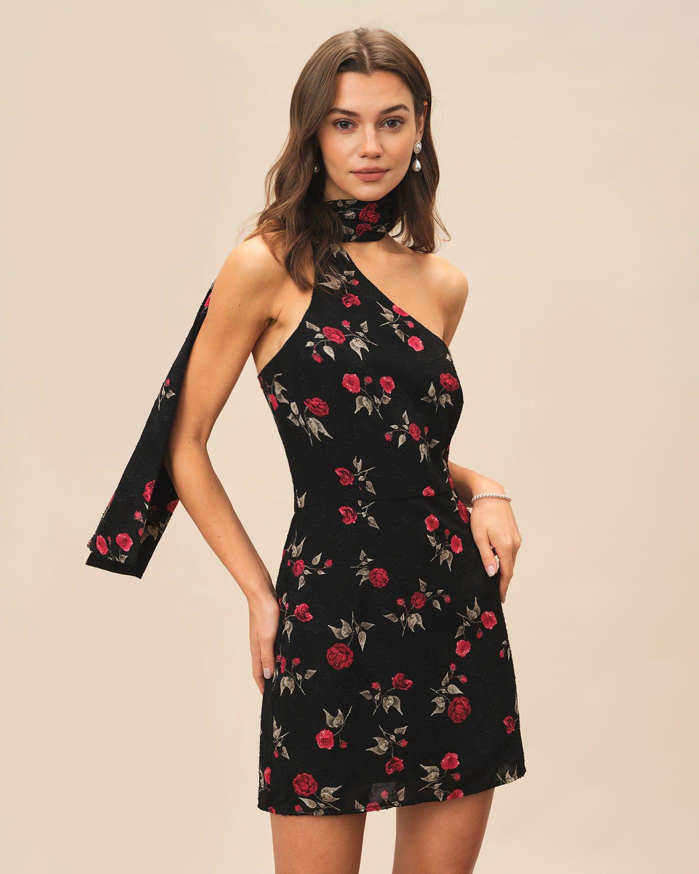 - Occasion: special occasion - Style: Formal - Season: Spring, Summer - Back Neckline: One shoulder - Fabric Stretch: No Stretch - Waist: Natural Waisted - Sleeve Length: Sleeveless - Sleeve Type: Sleeveless - Pattern Type: Floral - Embellishment: Jacquard, Floral, Backless, Draped, Tie - Neckline: One Shoulder - Dress Type: Sheath dress - Silhouette: A-Line - Fabric: Polyester - Lining: Polyester - Material: Jacquard - Fabric Types(Pattern Style): print