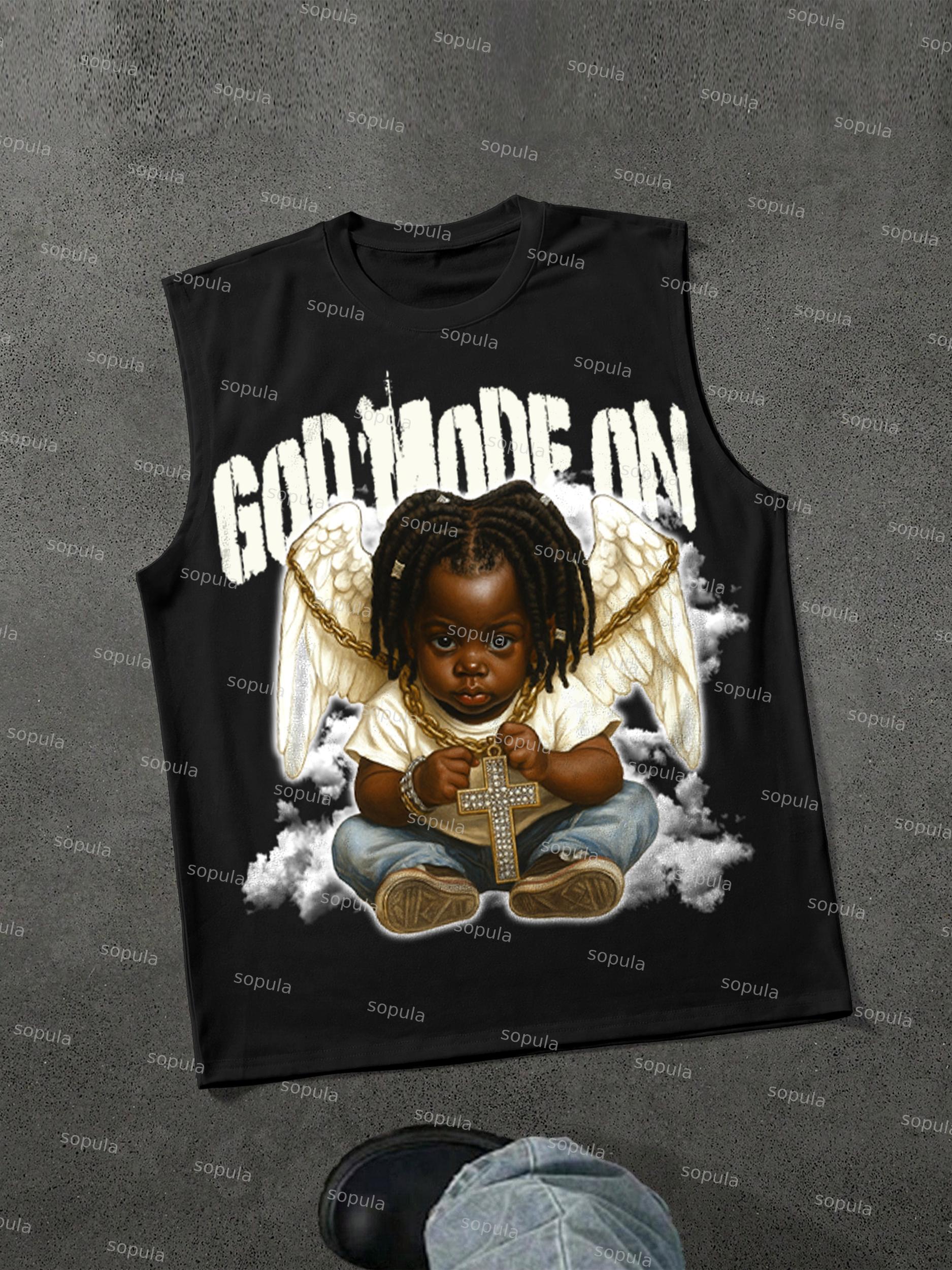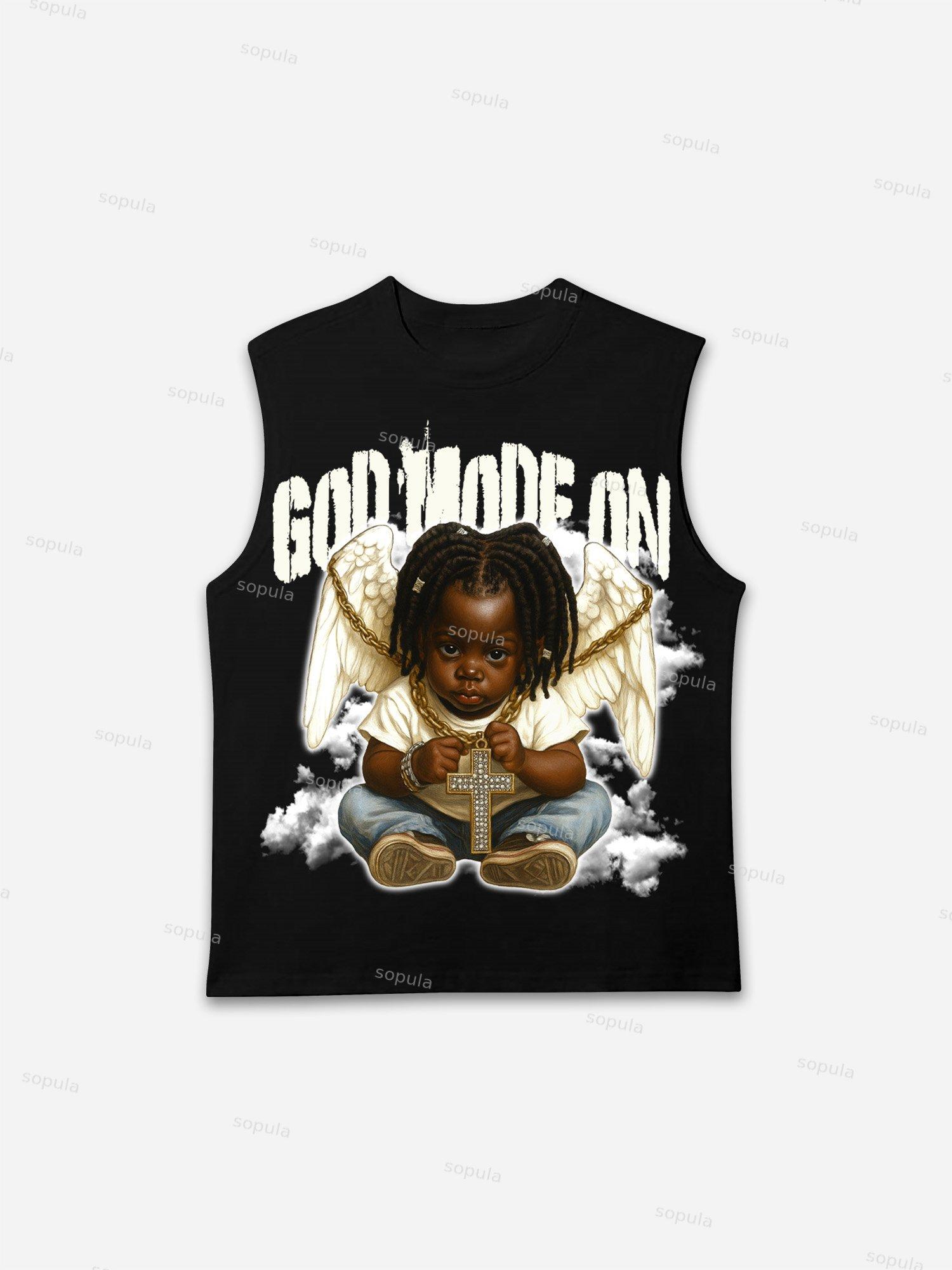 Black Kid Angel God Mode Is On Vintage Graphic Tank Top