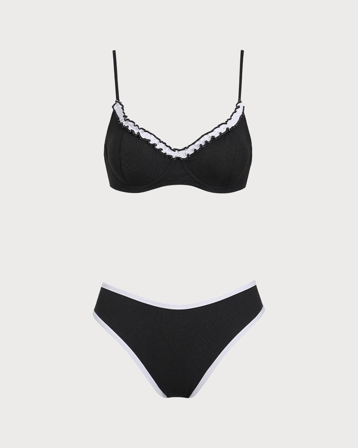 Fabric: 92%Polyester, 8%Spandex Lining: 90%Polyester,10%Spandex Back Neckline: Strappy Fabric Stretch: High Stretch Waist: Low Waisted Closure Type: Elastic Waist Pattern Type: Solid Embellishment: Elastic Waist, Tie, Contrasting colors, Ruched Neckline: Scoop Neck Fabric: Polyester 92.0%, Spandex 8.0% Lining: Polyester 90.0%, Spandex 10.0% Leg Opening: Mid Cut Leg Padding: Removable Soft Cups Bottom Coverage: Moderate Bottom Coverage Bra Coverage: 3/4 Cup