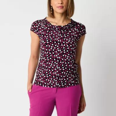 Black Label by Evan-Picone Womens Cowl Neck Short Sleeve Blouse