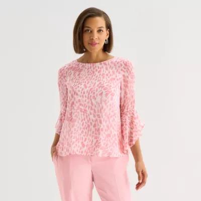 Black Label by Evan-Picone Womens Round Neck 3/4 Sleeve Blouse