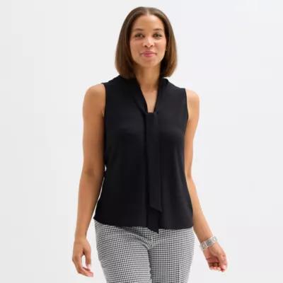 Black Label by Evan-Picone Womens Split Tie Neck Sleeveless Blouse
