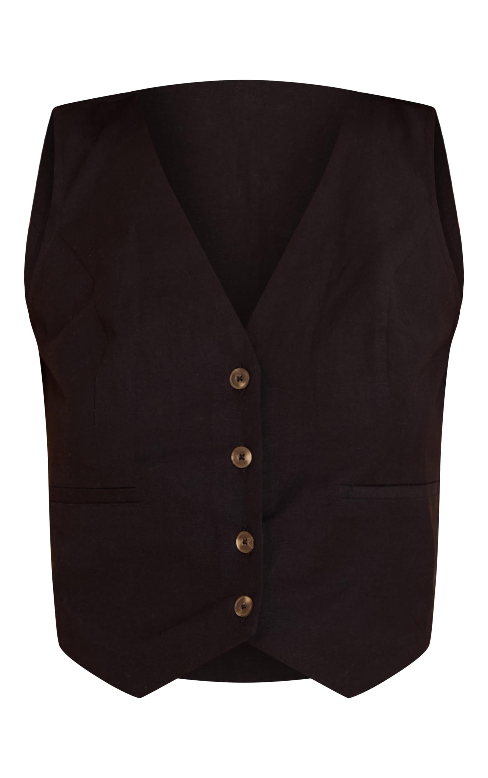 The black linen look boxy detail vest is the ultimate tailored essential with a breathable feel and boxy structure. Ideal for layering or wearing solo. Team with matching shorts and gold jewelry for a smart summer set.Length approx 48.5cm/19inch (Based on sample size US 4)Model wears size UK 8/ EU 36/ AUS 8/ US 4Model Height - 5ft 7inchp]:!mb-4inch>Brand: PrettyLittleThingCategory: Co-ordsProduct type: WaistcoatColor: BlackMaterial: Faux LinenDesign: PlainNeckline: PlungeSleeves: SleevelessOccasion: Day