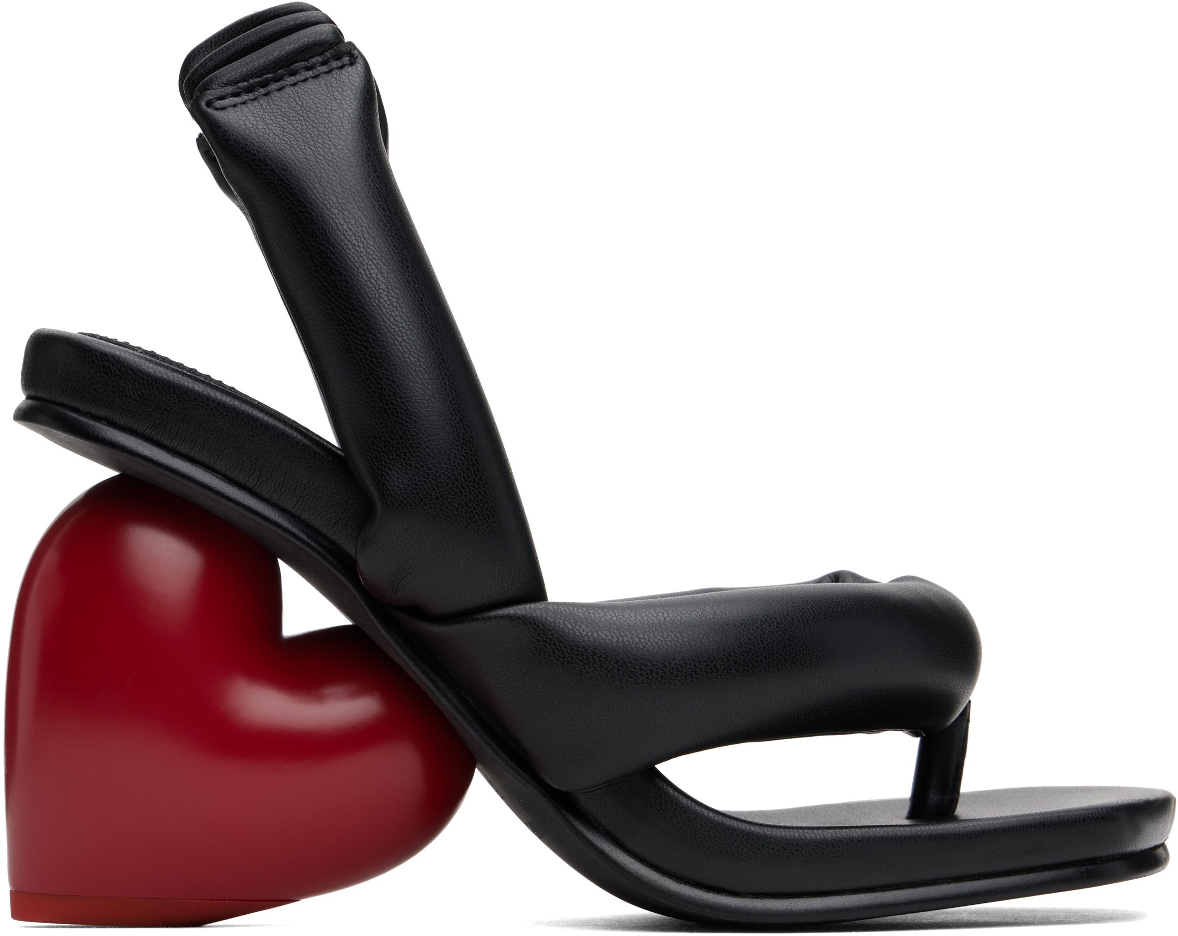 Padded grained faux-leather heeled sandals in black.